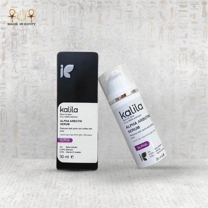 رحلة العناية بالبشرة تبدأ دائمًا من الأساس، و**سيروم Kalila Alpha Arbutin** هو سر الإشراقة الفاخرة والمظهر النقي الخالي من العيوب. بتركيبته العلمية المتطورة والمصمّمة بعناية، يستهدف هذا السيروم التصبغات العنيدة، ويوحد لون البشرة، ويمنحها مظهرًا أكثر إشراقًا وصفاءً، مع تغذية عميقة وحماية فعّالة ضد العوامل التي تؤثر على شبابها.