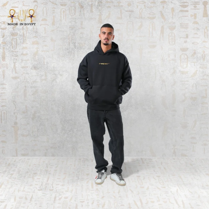 تم تصنيع الهودي من قطن فاخر ثقيل بنسبة 100% ليمنحك دفء وراحة استثنائية طوال اليوم. اللون الأسود العميق يعكس القوة والغموض، بينما تضيف الطبعة الخلفية باللون الذهبي لمسة ملكية تبرز وجه الملكة نفرتيتي بإشعاع خالد. التصميم مستوحى من روح القوة الداخلية التي تمزج بين الجمال والسيطرة، ليصبح الهودي أكثر من مجرد ملابس — إنه بيان يعكس شخصية من يرتديه.