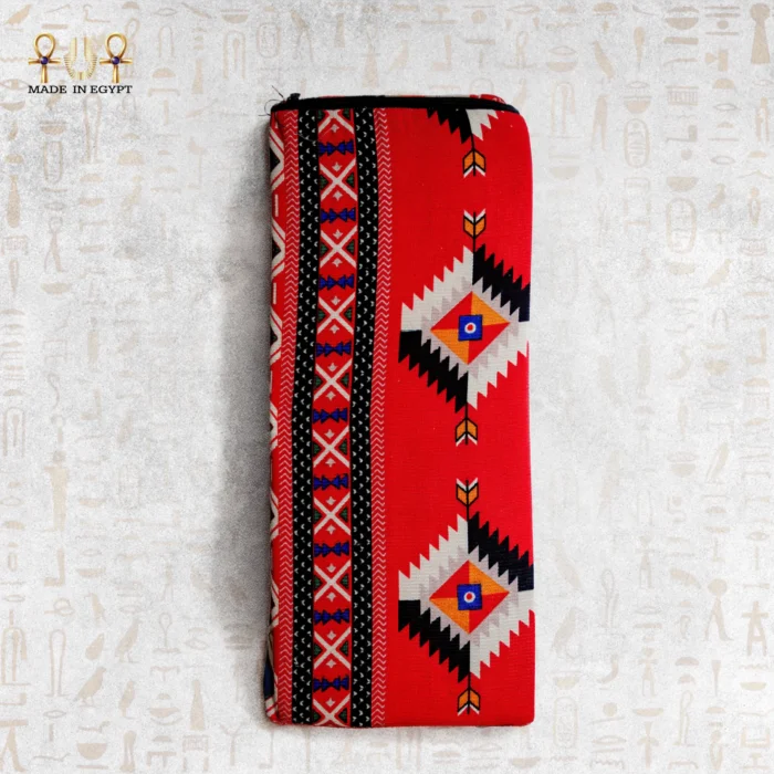 تتميز وسادة الصعيد بلونها الأحمر الغني الذي يرمز إلى الطاقة والقوة. تمتزج معه تفاصيل هندسية دقيقة بألوان تراثية مثل الأخضر الذي يعبر عن الحياة والنماء، والبرتقالي الذي يضيف دفئًا بصريًا جذابًا، والبيج الذي يمنح توازنًا وانسجامًا مريحًا للعين. هذه الألوان لا تأتي عبثًا؛ فهي رموز للحياة، الشمس، والنخيل، وللأرض الخصبة التي تميز جنوب مصر.