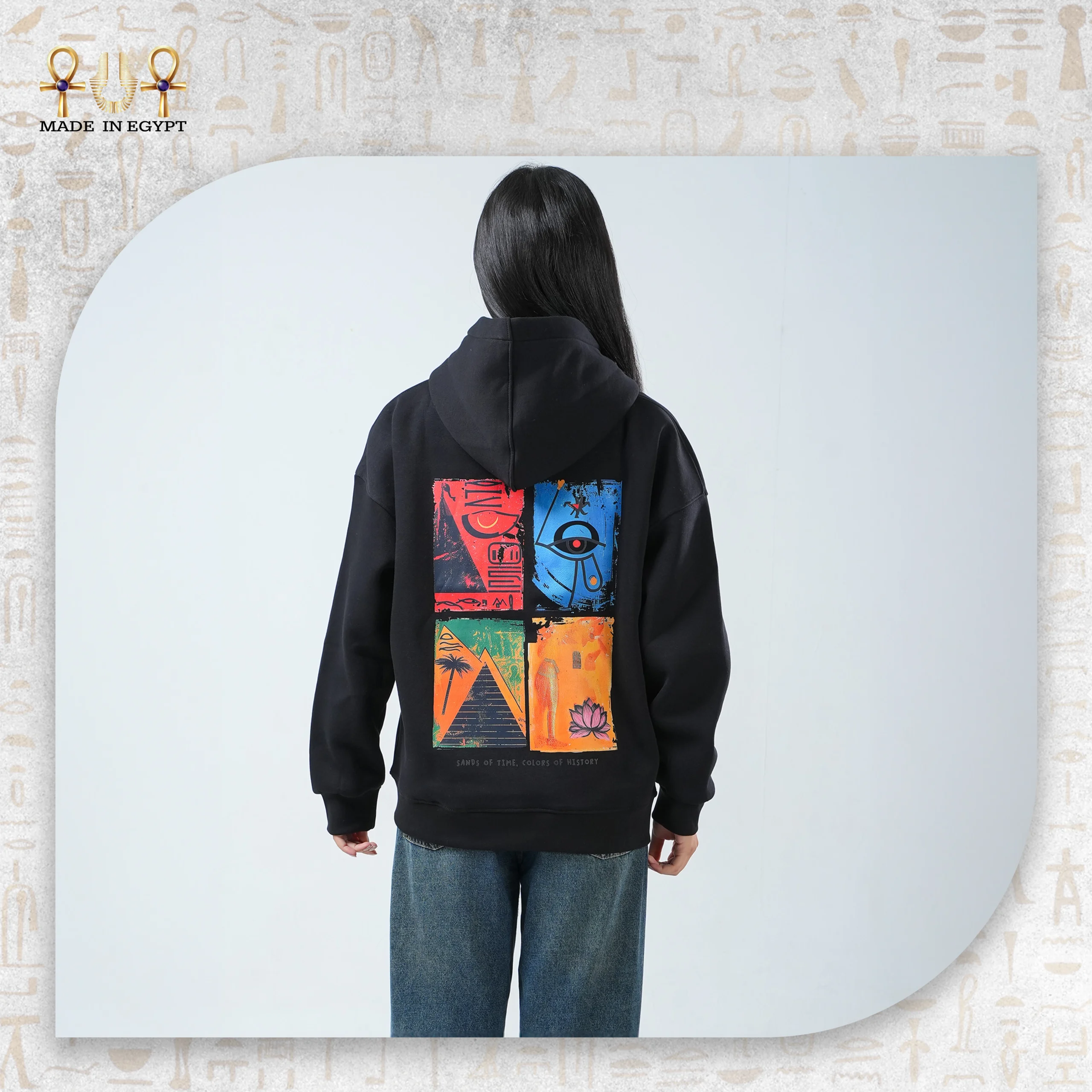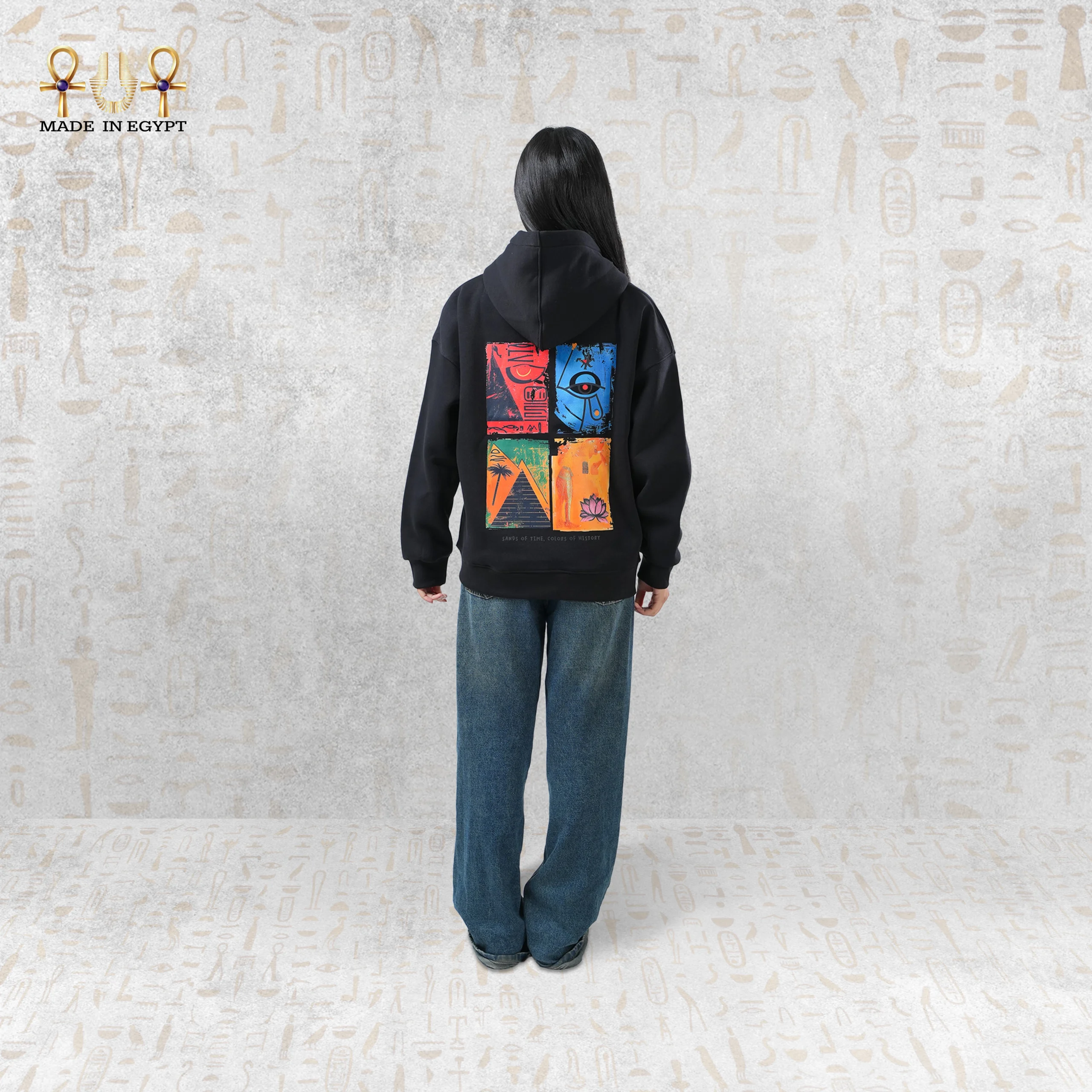 هودي آنشنت أورا يحتفي بألوان الحضارة المصرية في تصميم فني نابض بالحياة، مصنوع من قطن ثقيل 100% بقصّة مريحة وأسلوب معاصر يعكس روح التاريخ بأسلوب عصري.