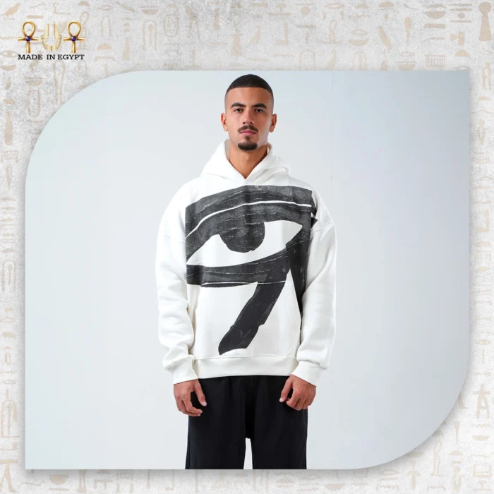 استحضري سحر الحضارة المصرية القديمة مع هودي آي أوف را من Neper. هذا التصميم يجمع بين الأصالة الفرعونية والأسلوب العصري في قطعة واحدة تعبّر عن القوة والهوية. فهو يمنحك إطلالة يومية مليئة بالثقة والتفرّد مع لمسة فنية مستوحاة من الرموز المصرية القديمة.
