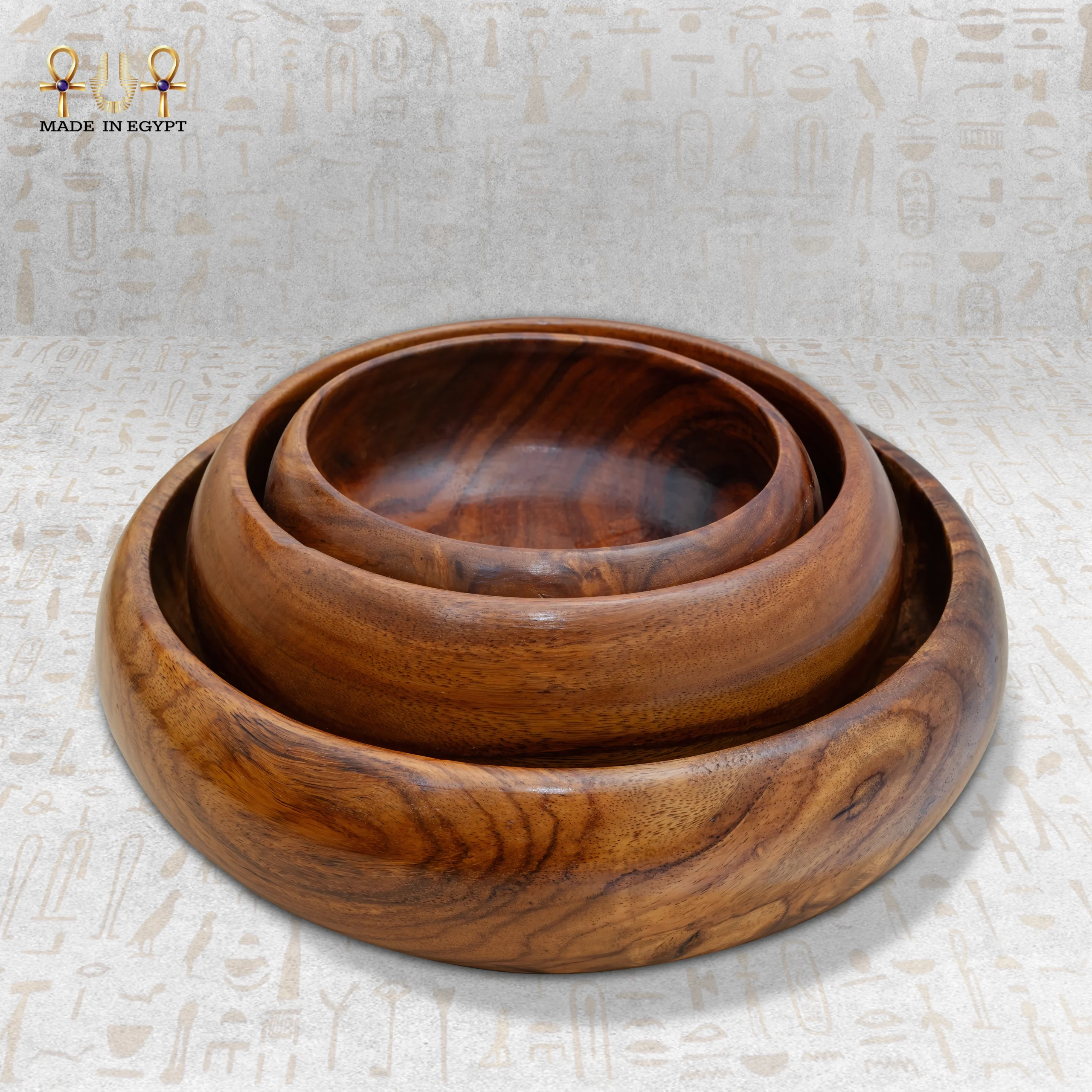 أطباق خشبية تراثية – لمسة من الجمال والفخامةتعتبر الأطباق الخشبية التراثية المصنوعة يدويًا من أفضل الخيارات لكل من يهتم بالجودة والجمال في نفس الوقت. تم تصميم هذه الأطباق باستخدام أفضل أنواع الخشب الطبيعي، مما يضمن لها متانة استثنائية وجودة عالية. يتم تصنيع كل طبق بعناية شديدة من قبل حرفيين مصريين محترفين، حيث يتم اختيار الخشب بعناية وتشكيله باستخدام تقنيات تقليدية تحافظ على طابع الخشب الطبيعي، وتضفي على المنتج لمسة من الفخامة. تتميز الأطباق الخشبية بتصميمها البسيط والأنيق الذي يدمج بين الحرفية المصرية العريقة والتصميم العصري، مما يجعلها مناسبة لجميع الأذواق. سواء كانت في المطبخ أو على الطاولة لتقديم الطعام، فإن الأطباق تضيف لمسة فنية وأنيقة لكل مكان توضع فيه. يمكن استخدامها لتقديم مجموعة متنوعة من الأطعمة مثل المقبلات، السلطات، الحلويات، أو الفواكه. تتميز الأطباق بحواف مدورة ناعمة، مما يسهل استخدامها ويجعلها مريحة في الحمل والتقديم. كما أن سطحها الملساء يجعلها سهلة التنظيف والصيانة، مما يجعلها مثالية للاستخدام اليومي. الخشب المستخدم يحافظ على خصائصه الطبيعية لفترة طويلة، مما يضمن استدامتها وجمالها على مر السنين. إضافة إلى جمالها العملي، توفر الأطباق الخشبية لمسة من التراث المصري بفضل النقوش الدقيقة المستوحاة من الفن المصري القديم التي تزين الأطباق. يمكن استخدامها ليس فقط كأداة لتقديم الطعام، بل أيضًا كقطعة ديكور رائعة تضيف طابعًا خاصًا لمنزلك. باختصار، تعتبر الأطباق الخشبية التراثية الخيار المثالي لأولئك الذين يبحثون عن منتج يجمع بين الجمال والفائدة في آن واحد، ويضيف لمسة من الفخامة إلى كل مناسبة.