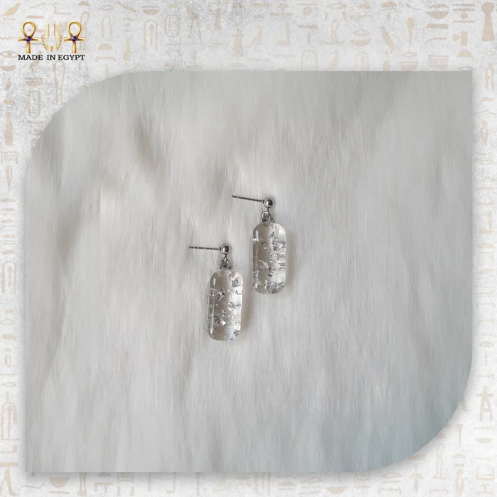 حلق سيلفر ريزن هو قطعة أنيقة من الإكسسوارات المصنوعة يدويًا بعناية فائقة لتمنحك لمسة من الفخامة والبساطة في آن واحد. يتميز هذا الحلق بتصميمه المستطيل الناعم المصنوع من خامة الريزن الشفاف الذي يحتوي بداخله على رقائق الفضة اللامعة، مما يعكس الضوء بطريقة راقية تضيف بريقًا مميزًا لإطلالتك.