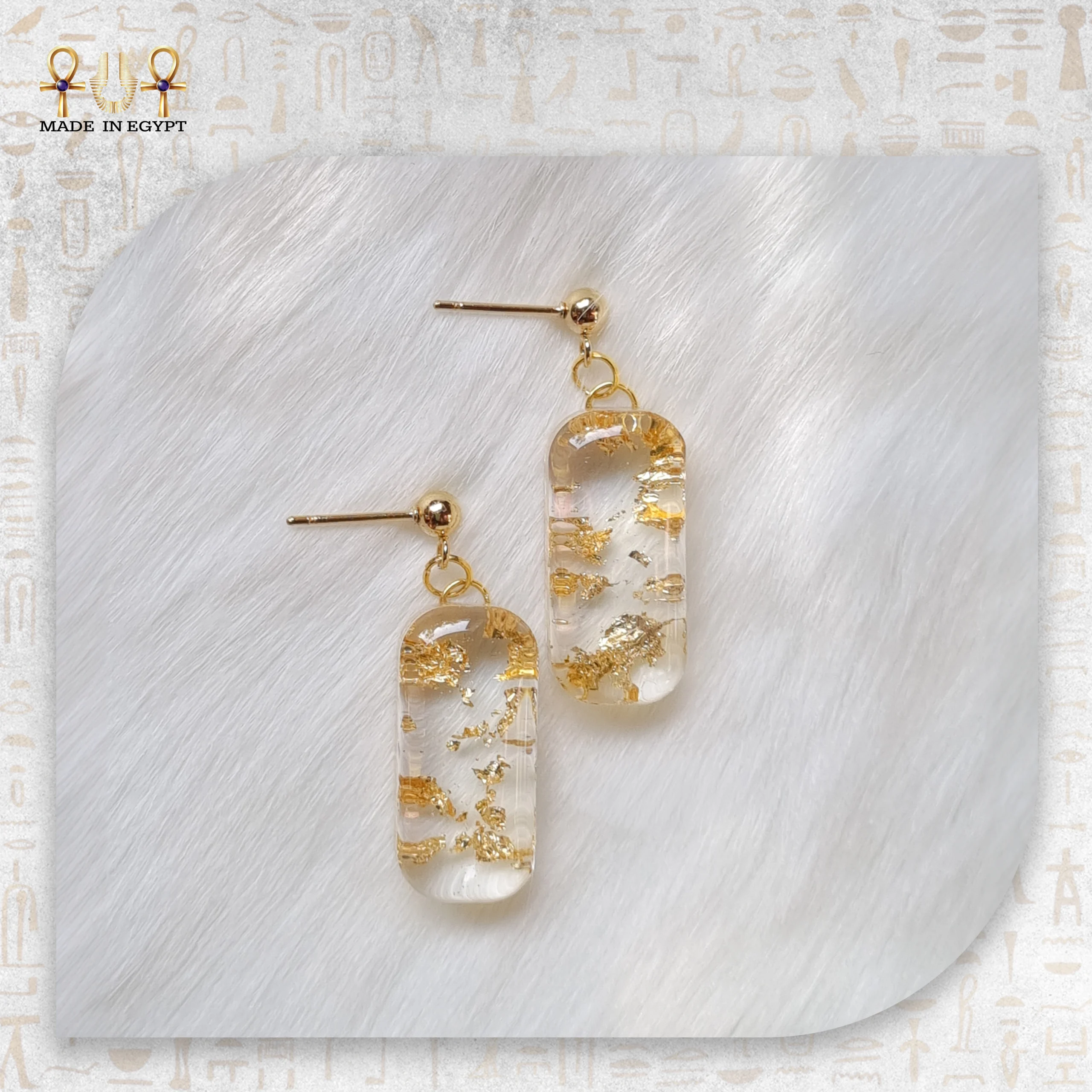 حلق يدوي من الريزن الشفاف بداخله ورق ذهب، تصميم راقٍ يضيف لمسة أنثوية فخمة لإطلالتك.