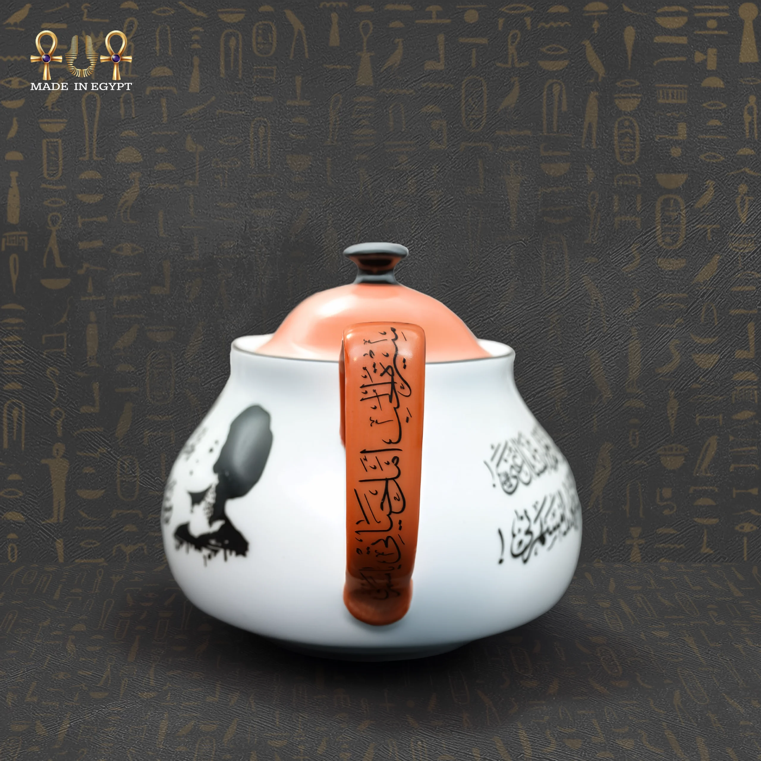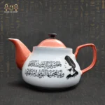يُعتبر إبريق شاي أم كلثوم قطعة فنية استثنائية تجمع بين التراث الموسيقي العربي والفن اليدوي الراقي. صُنع البراد من البورسلين الفاخر، وزُين بصورة أيقونية لأم كلثوم، بالإضافة إلى كوبليهات من أشهر أغانيها مثل “أنت عمري” و*”غنّيلي شوية شوية”*. كما يزين الإبريق خطوط عربية أنيقة تعكس سحر أغانيها وتاريخها الفني الغني. لذلك، يعد هذا الإبريق أكثر من مجرد أداة للشاي؛ فهو تحفة فنية تحمل روح الموسيقى المصرية والعربية الخالدة.