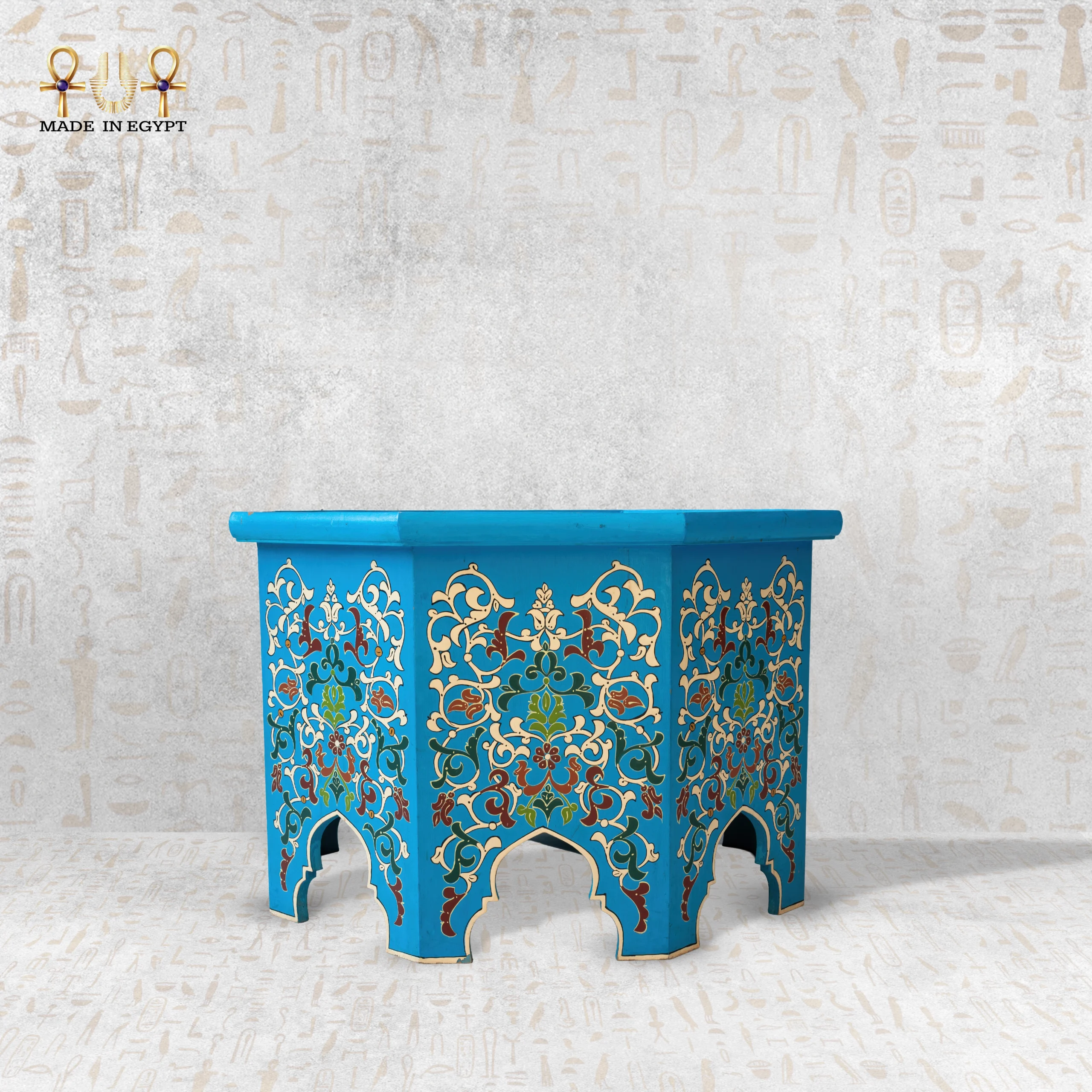 صُنعت القطعة من خشب طبيعي عالي الجودة، مع تشطيب يدوي يبرز روعة الحرفة التقليدية. التصميم متكامل من جميع الزوايا، مما يسمح بوضع القطعة في منتصف الغرفة أو ركن هادئ دون فقدان جمالها. كما أن قاعدة التصميم المستوحاة من الأقواس الشرقية تضيف لمسة معمارية أصيلة وتعزز ثبات القطعة وأناقتها.
