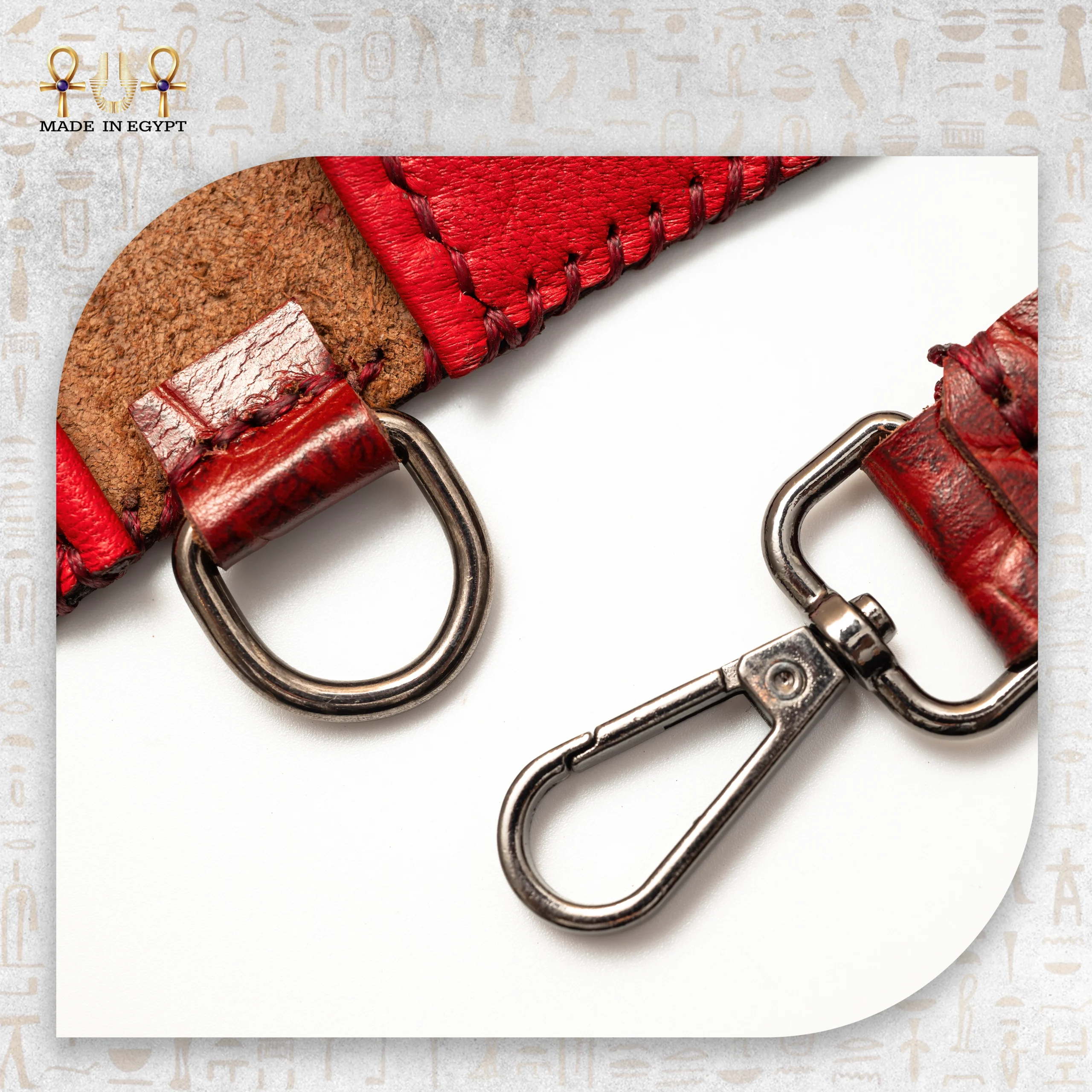 تم تصنيع برتفـية نفرتيتي يدويًا بالكامل من جلد بقري طبيعي مختار بعناية، مع طبعة التمساح التي كانت رمزًا للقوة والحماية عند المصريين القدماء. بالإضافة إلى ذلك، اللون الأحمر الملكي يمنح القطعة حضورًا يخطف الأنظار، فهو يعكس الطاقة والعظمة والهيبة الملكية، مما يجعل البرتفـية قطعة فريدة في أي مناسبة.