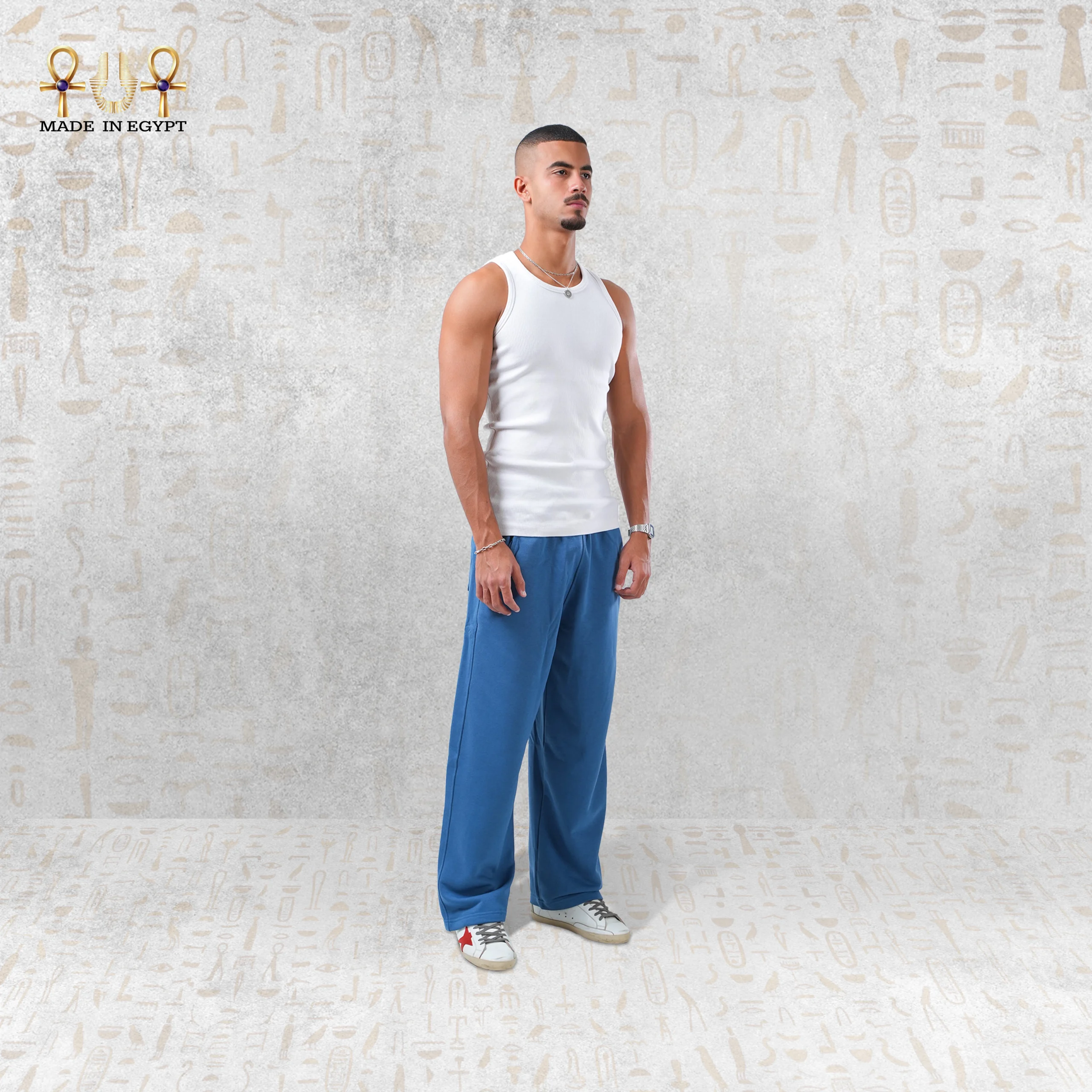 يأتي البنطلون بقصّة Wide Leg تمنح انسيابية رائعة أثناء الحركة وشعورًا بالراحة، وهو مصنوع من 100% قطن ثقيل عالي الجودة يجمع بين المتانة والنعومة. يتميز بخصر مطاطي مزوّد برباط داخلي قابل للتعديل لتوفير ملاءمة مثالية لمختلف المقاسات، ما يجعله خيارًا عمليًا ومريحًا لجميع الأجسام.