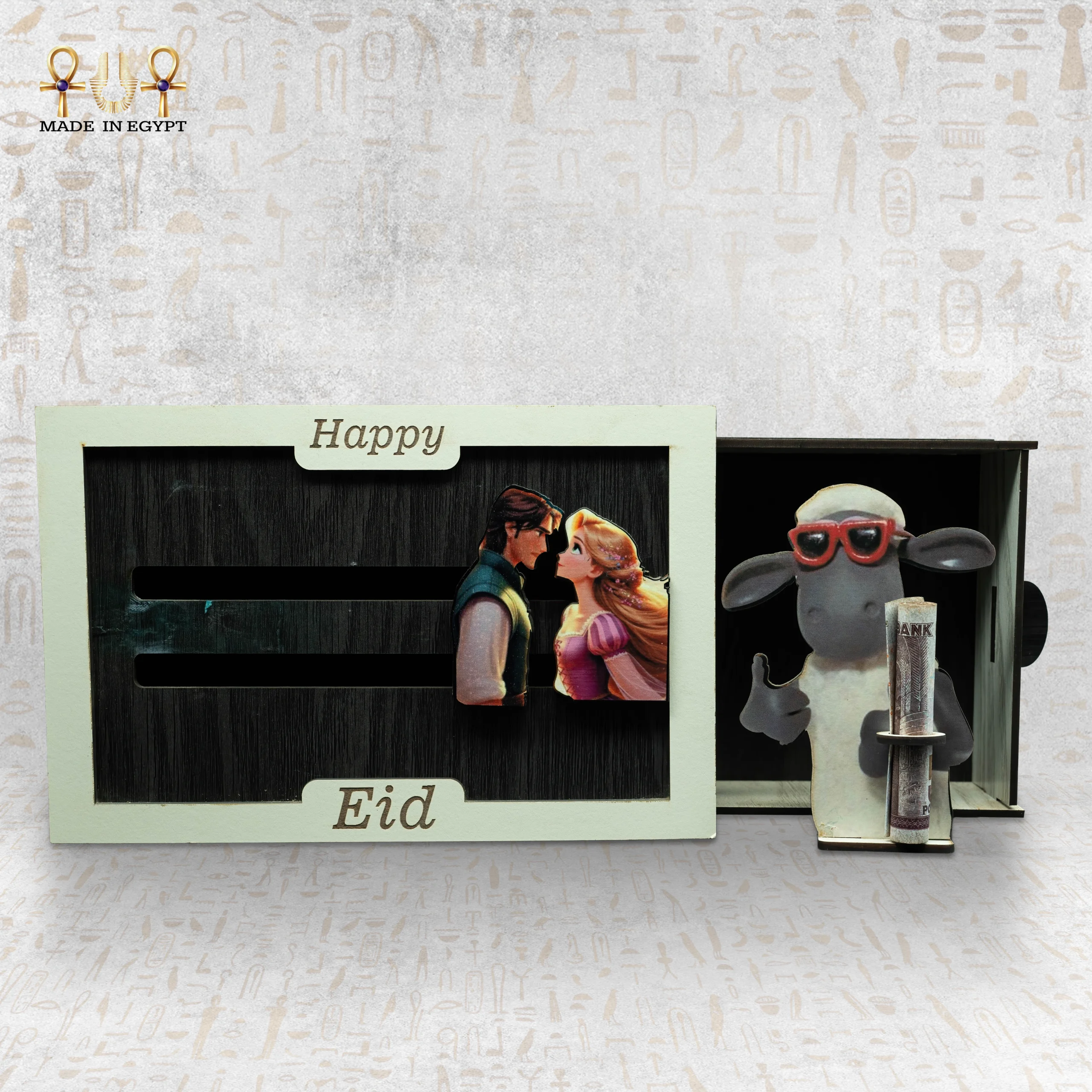 يحتوي Eid Love Box على آلية داخلية يمكن من خلالها تحريك شخصيتين ضمن تصميم يحاكي قصة حب بسيطة ورقيقة. وتضفي هذه الحركة لمسة رومانسية هادئة تعبر عن مشاعر الود التي ترافق العيد. بالإضافة إلى ذلك، يظهر الخروف الصغير ذو النظارات الحمراء عند فتح الصندوق، حاملاً العيدية بطريقة مبتكرة.