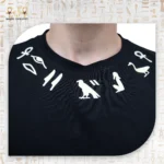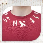 تُزيّن مقدمة التيشيرت صورة الإله أنوبيس، حارس العالم الآخر عند المصريين القدماء، في طباعة فنية دقيقة تنقل الإحساس بالقوة والغموض. هذه الرسومات الهيروغليفية لا تُعد مجرد تفاصيل زخرفية، بل هي رمز للحكمة والخلود، مما يجعل التصميم غنيًا بالمعاني العميقة.
