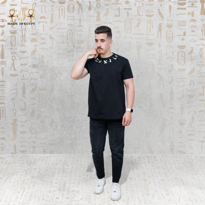 باختصار، هذا التيشيرت هو مزيج مثالي من الراحة، والأناقة، والتراث. إنه قطعة تعبّر عن القوة والثقافة، وتمنحك مظهرًا فريدًا يجمع بين التاريخ والحداثة في آن واحد. ارتدِه بفخر، وكن سفيرًا للأناقة المصرية الأصيلة أينما ذهبت.