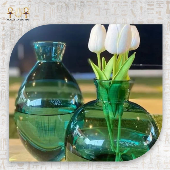 في النهاية، يُعد ثنائي الزمرد أكثر من مجرد فازات عادية. فهي تعبير فني عن الانسجام والجمال الخالد، وتضيف لمسة من الرقي لأي مساحة توضع فيها. مع كل انعكاس للضوء، تنبض القطع بالحياة، لتصبح جزءًا من ديكور متكامل يجمع بين الأناقة، الصفاء، والتميز البصري.