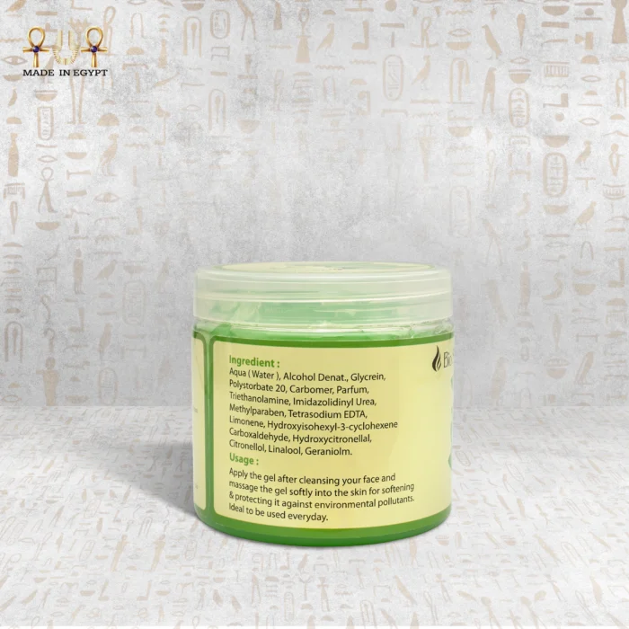 يعمل الجل بتركيبته الخفيفة غير الدهنية على اختراق طبقات البشرة بسرعة، ليهدئ الاحمرار الناتج عن التعرض للشمس، ويقلل من التهابات البشرة ويعالج حب الشباب بفضل خصائصه المضادة للبكتيريا. كما يساعد في تنظيم إفراز الزيوت، مما يجعله مثاليًا للبشرة الدهنية والمعرضة للمشاكل.