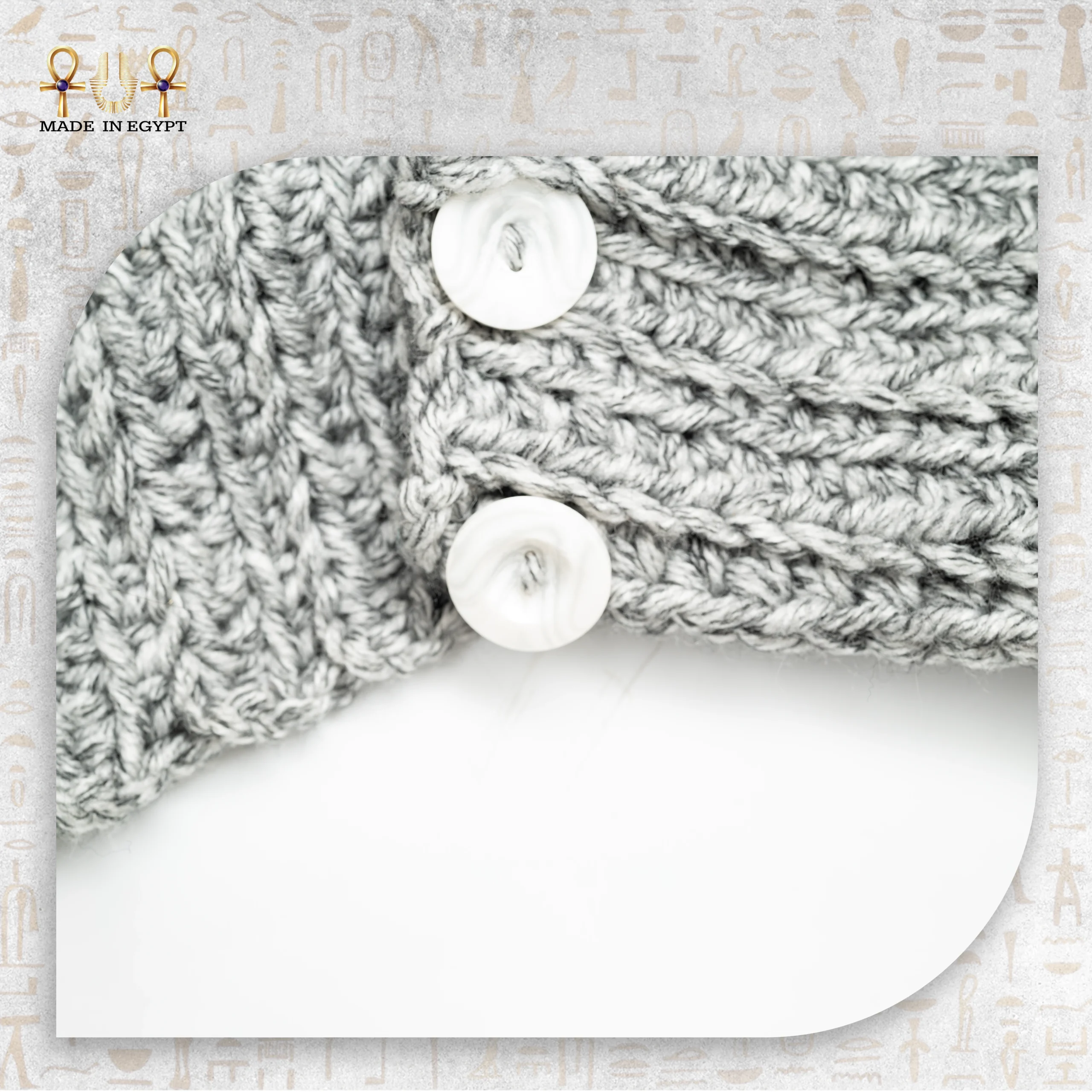 حضن الشتاء هو وشاح شتوي ناعم يدوي، بلون رمادي هادئ، مصمم ليمنحك دفء وراحة في الأيام الباردة. تصميمه البسيط مع الأزرار الأنيقة يجعله قطعة دافئة وأنيقة تناسب مختلف الملابس الشتوية، ويضفي لمسة من الأناقة والراحة على إطلالتك.
