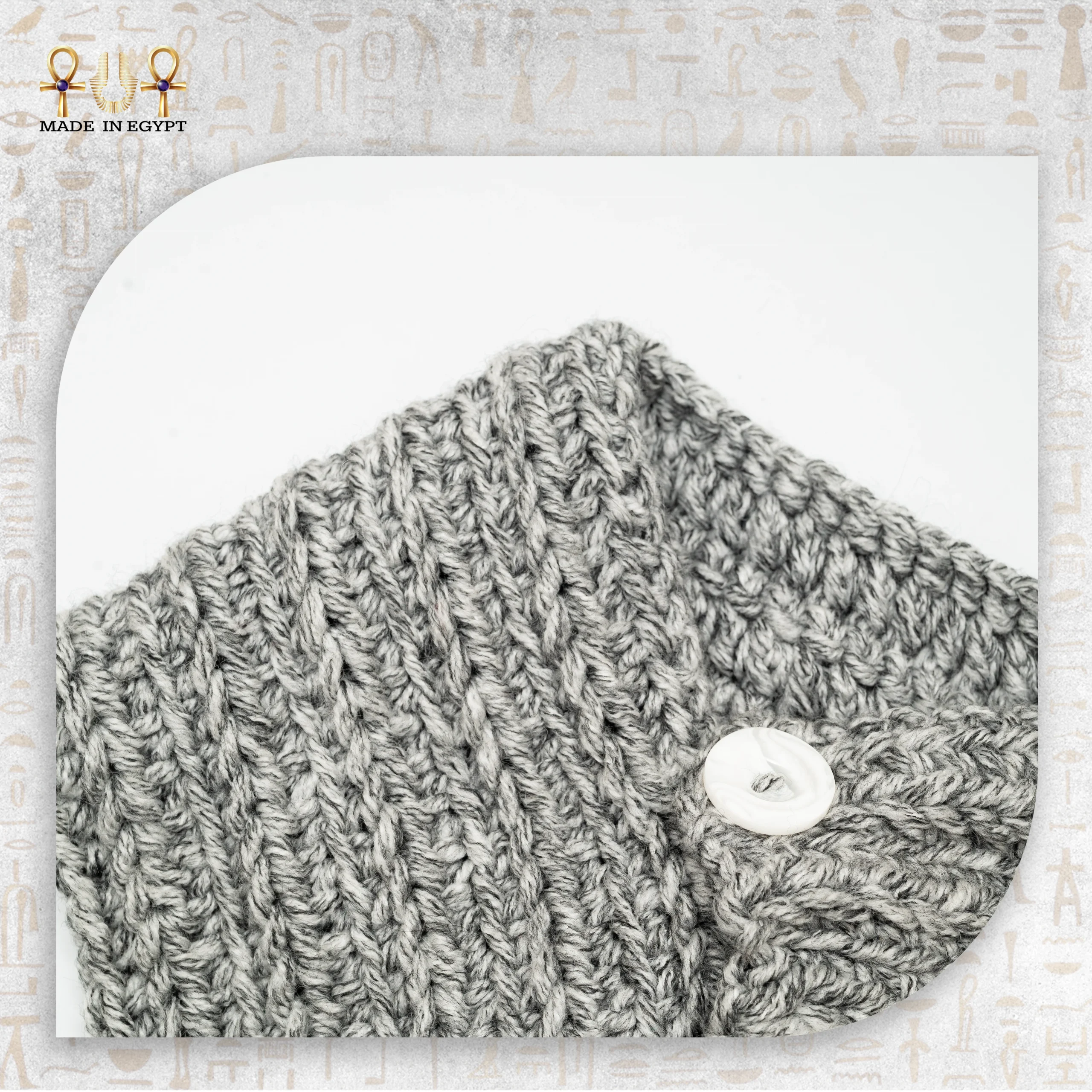 يأتي التصميم بشكل عملي يلتف حول الرقبة بسهولة، مع أزرار أنيقة تتيح تثبيته وضبطه حسب الرغبة. هذه التفاصيل البسيطة تضيف لمسة جمالية مميزة، كما تمنح الوشاح مرونة في الاستخدام، سواء تم ارتداؤه بإحكام لمزيد من الدفء أو بشكل أخف لإطلالة أكثر راحة. الأزرار تضيف أيضًا طابعًا أنيقًا يجعل الوشاح يبدو كقطعة متكاملة وليس مجرد إكسسوار عابر.