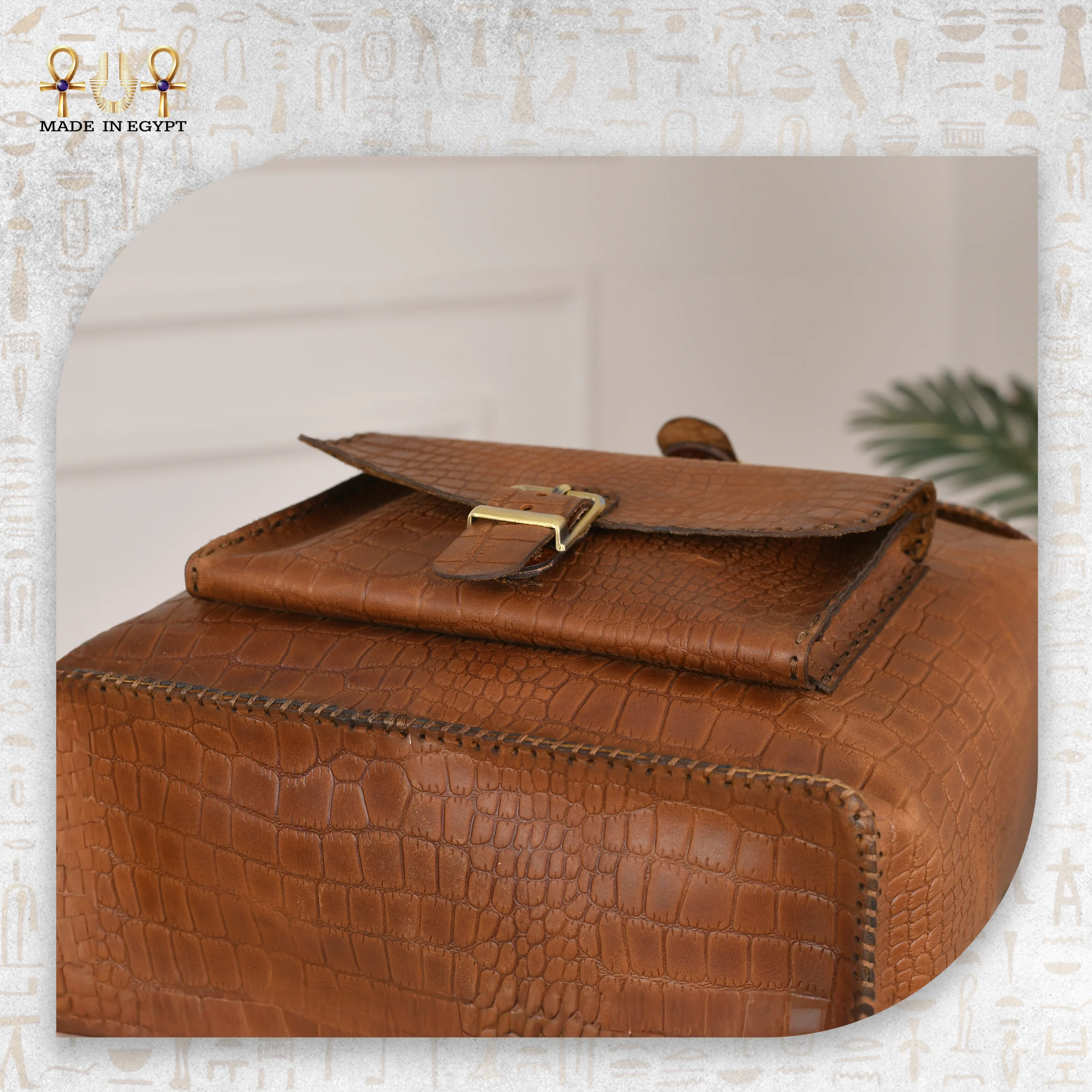 إن حقيبة الأثر ليست مجرد حقيبة ظهر، بل عمل فني يجمع بين الجلد الطبيعي والحرفية المصرية الراقية.