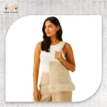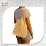 حقيبة كروشية صيفية يدوية باللون البيج الطبيعي، تصميم شبكي واسع بحزام كتف مريح. مثالية للبحر، التسوق، أو الإطلالات اليومية الخفيفة.