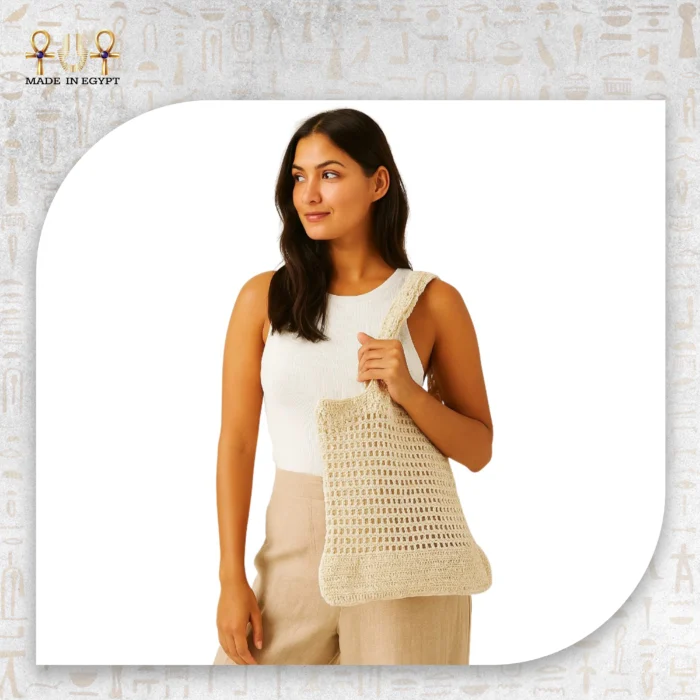 كل غرزة فيها تكشف عن دقة عالية ومهارة حرفية أصيلة — تم حياكتها على أيدي حرفيين مصريين يحرصون على تقديم قطعة تجمع بين فخامة التفاصيل وروعة البساطة. هذه الحقيبة لا تُعبّر فقط عن ذوقك الشخصي، بل أيضًا عن دعمك للمنتجات اليدوية المستدامة التي تعكس روح الفن المحلي.