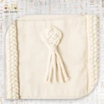 شنطة توتي من قماش الدك مزينة بعقدة مكرمية يدوية وسوستة داخلية.