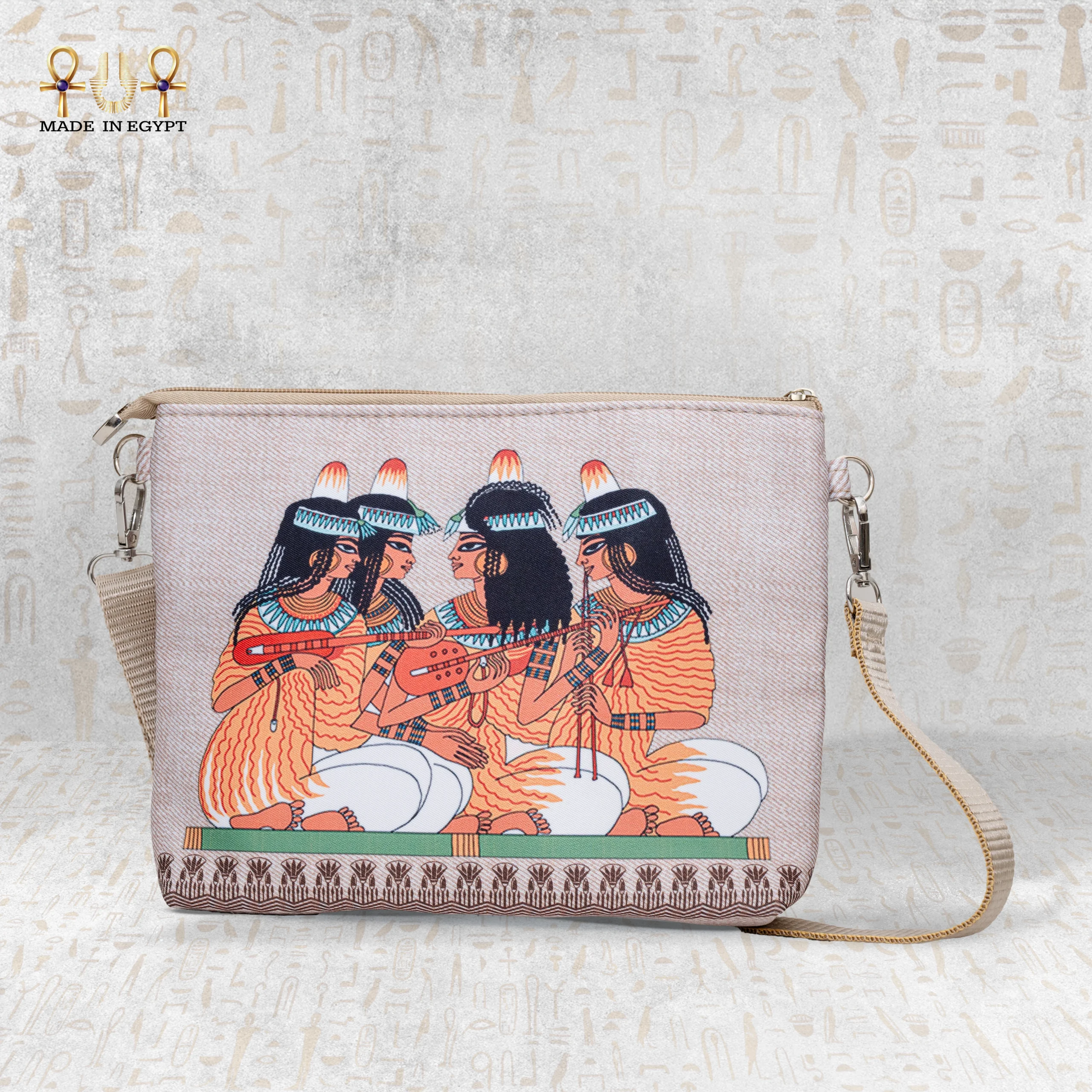 حقيبة النغم الفرعوني ليست مجرد إكسسوار، بل هي تعبير بصري عن حضارة عظيمة امتزج فيها الجمال بالموسيقى والإبداع. كل تفصيلة من تفاصيل التصميم تعكس براعة الصنعة ودقة التنفيذ، لتُبرز الجمال المصري القديم بروح عصرية تناسب جميع الأذواق.
