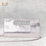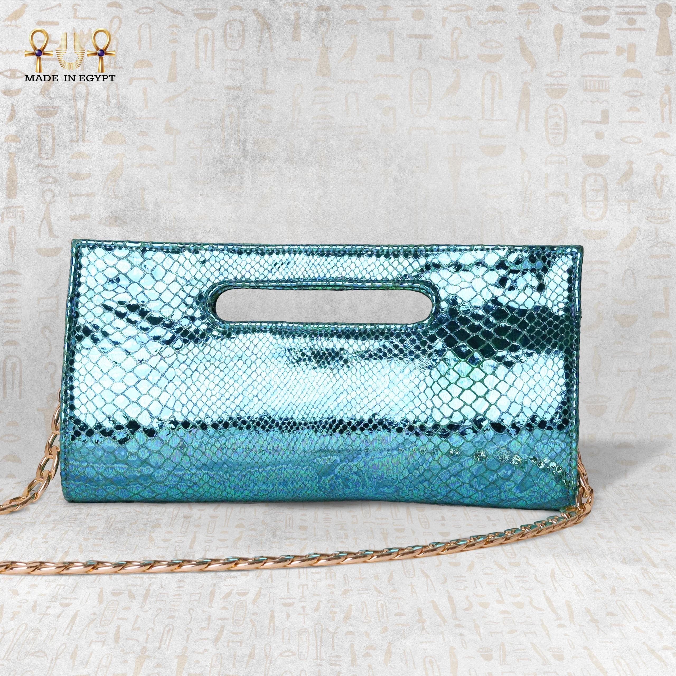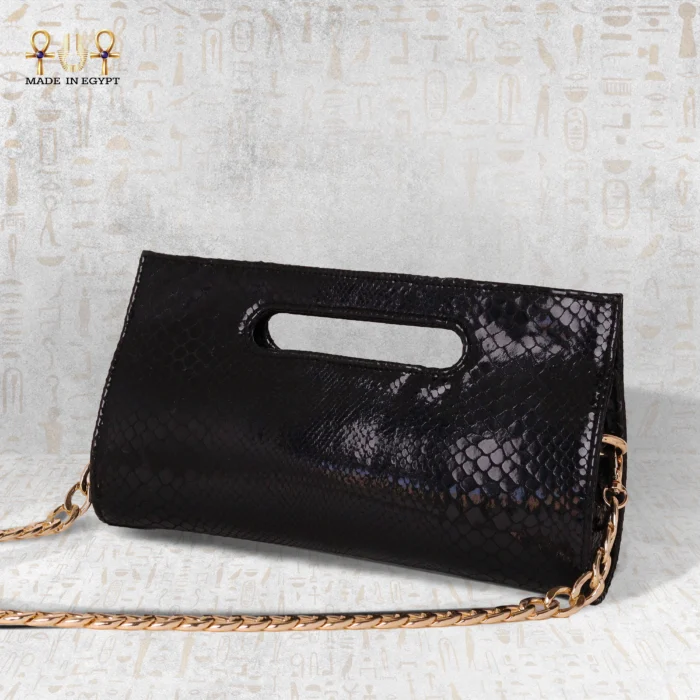 حقيبة **ميامي** مصممة من **جلد طبيعي** مع تشطيب لامع بتصميم منقوش يشبه جلد الزواحف. تتميز بشكل شبه منحرف أنيق، يجمع بين الأسلوب والعملية. وتأتي مع **سلسلة ذهبية مقاومة للصدأ** لإضفاء لمسة من الأناقة، بينما توفر الأقسام المتعددة تنظيمًا مثاليًا لأشيائك الأساسية. متوفرة بألوان فاخرة مثل **الذهبي**، **الأسود**، **الأزرق الملكي**، و**الأزرق المائي**. هذه الحقيبة مثالية للاستخدام اليومي أو المناسبات الخاصة.