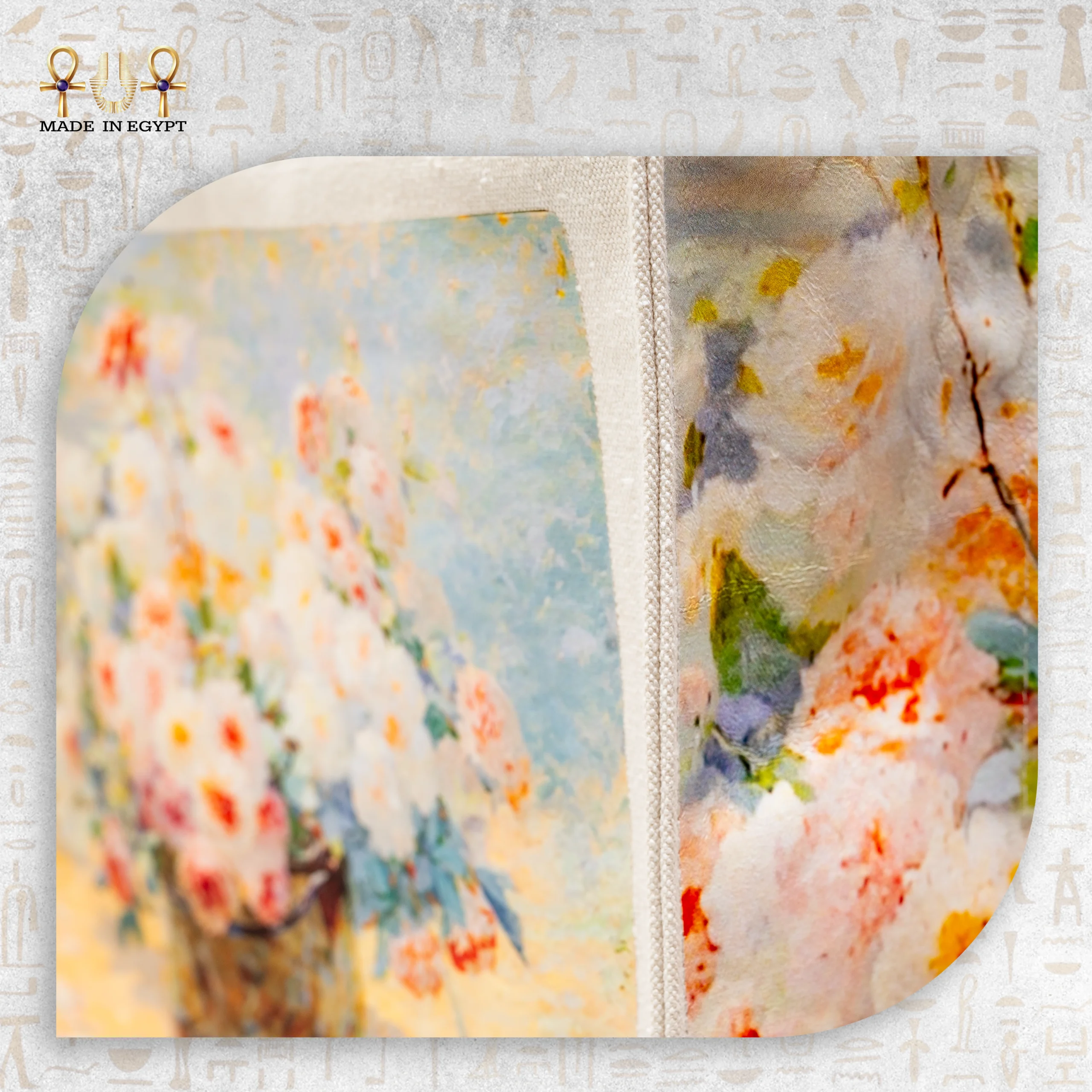 تحولت هذه اللوحة إلى طباعة فنية على الحقيبة لتجمع بين الجمال الكلاسيكي والاستخدام اليومي. تمنح الألوان الناعمة للورود مع الخلفية المضيئة الحقيبة طابعًا أنثويًا راقيًا، مما يجعلها مناسبة لمختلف الإطلالات اليومية.