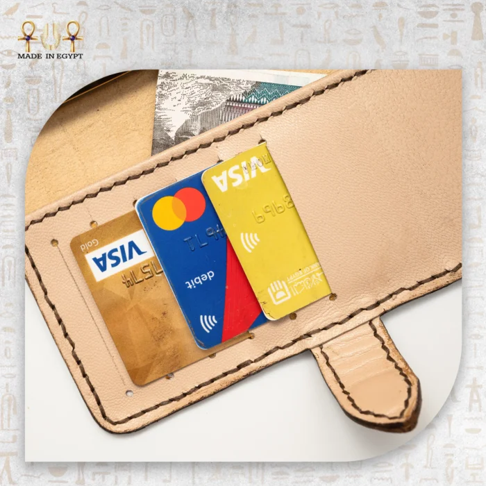 في البداية، يأتي درع الفراعنة بتصميم ذكي يجمع بين حماية الهاتف ووظائف المحفظة في قطعة واحدة. وبذلك، يمنحك راحة كاملة في استخدامك اليومي. تمامًا كما كان المصري القديم يجمع أدواته الثمينة في جراب واحد، للحفاظ عليها أثناء رحلاته عبر الصحراء أو خلال عبوره نهر النيل.