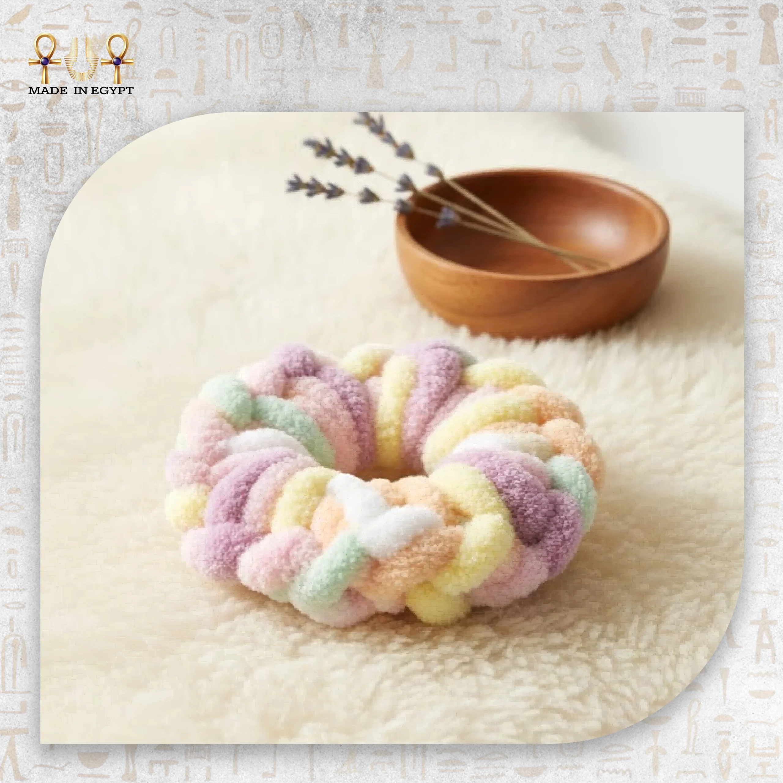 تصنع الربطة من خامة مخملية فائقة النعومة تشبه ملمس السحاب. تمنحك هذه الخامة إحساسًا مريحًا عند الاستخدام، كما تساعد على حماية الشعر من التكسر والتشابك. لذلك، تعتبر خيارًا مثاليًا للشعر الحساس أو الضعيف الذي يحتاج إلى عناية إضافية.