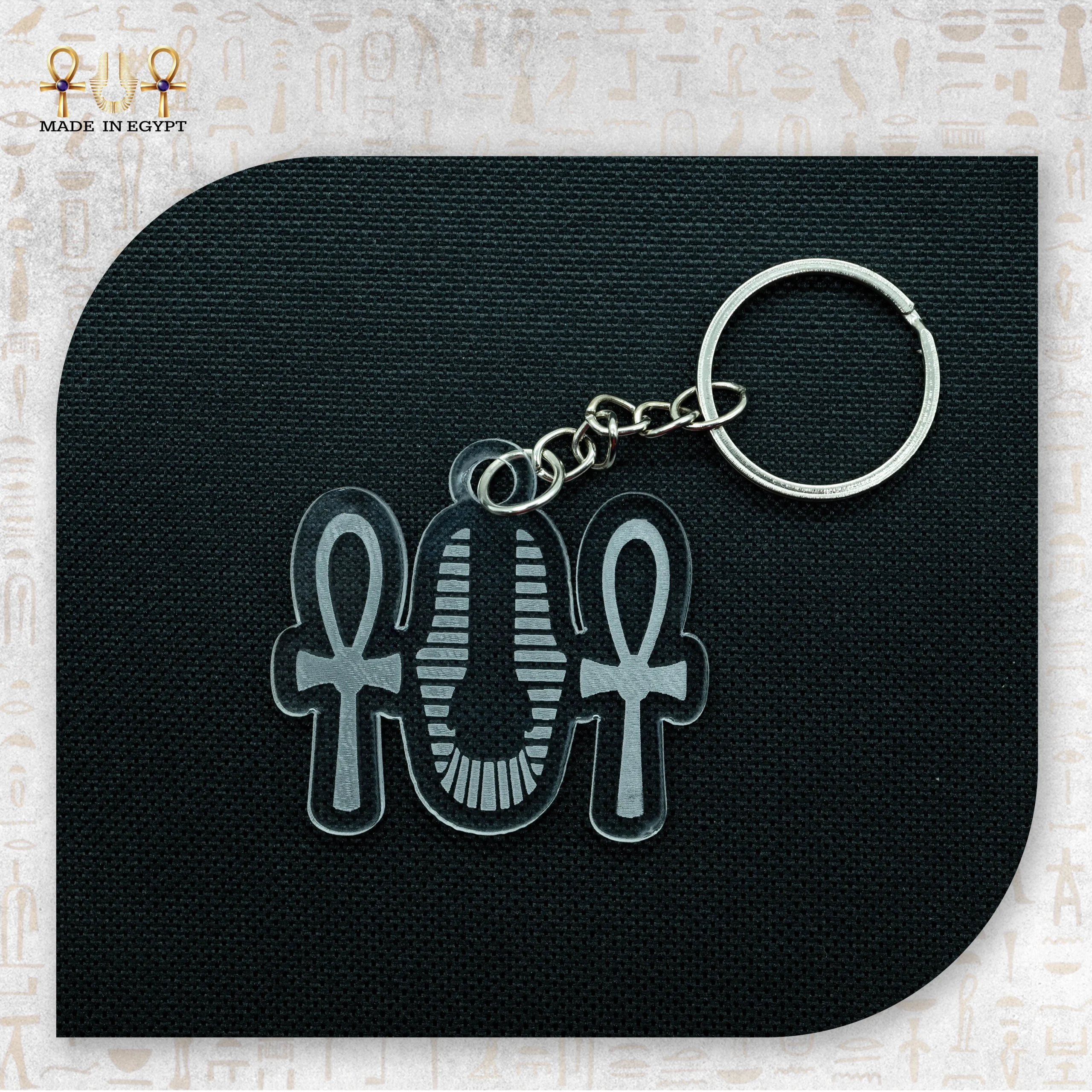 ميدالية من الأكريليك المحفور والمعدن المقاوم للصدأ، بتصميم فرعوني مستوحى من رمز الأنخ، تجمع بين الأصالة والأناقة العصرية.