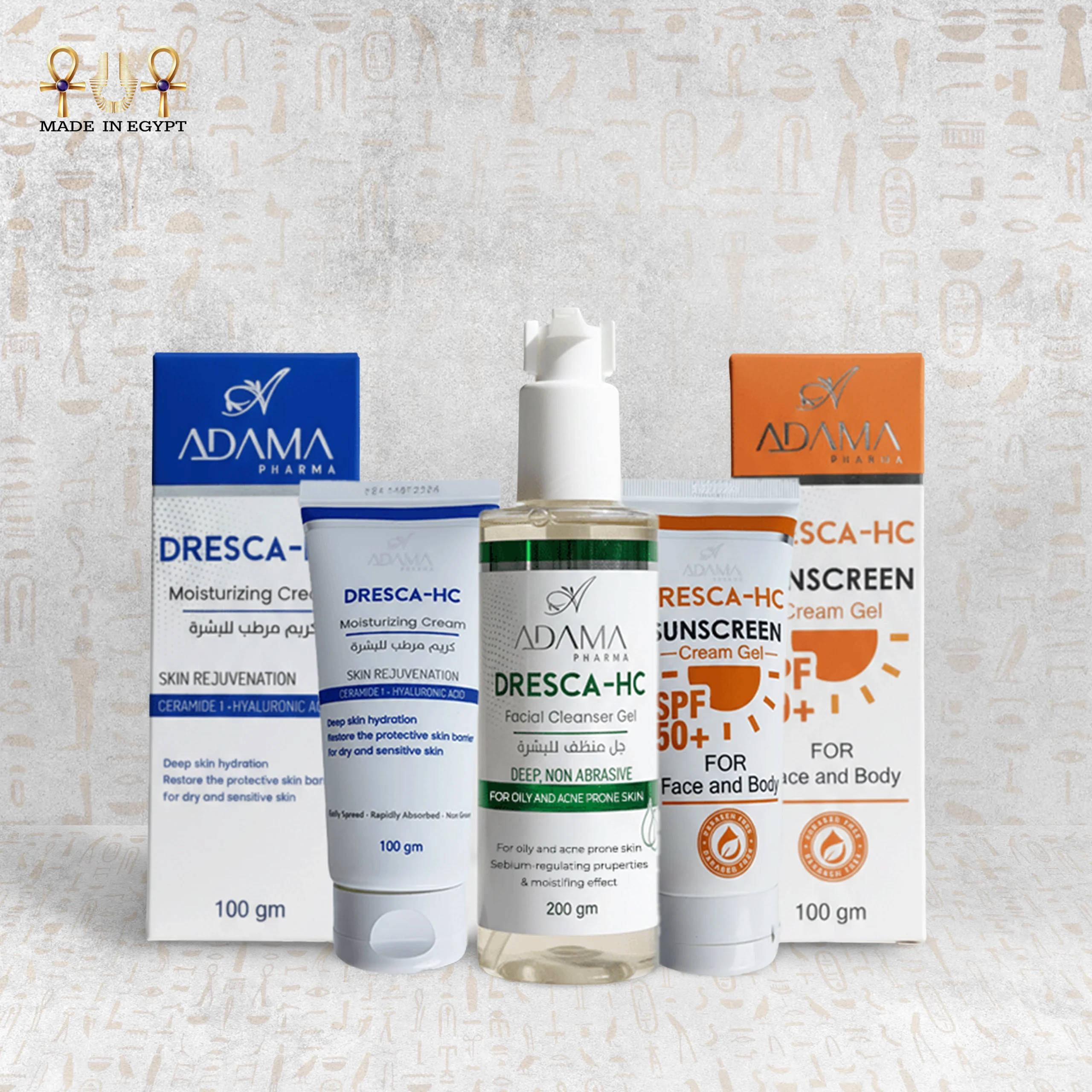 روتين دريسكا-إتش سي المتكامل يجمع بين التنظيف العميق، الترطيب الفعّال، والحماية من أشعة الشمس لبشرة صحية ومتوازنة.