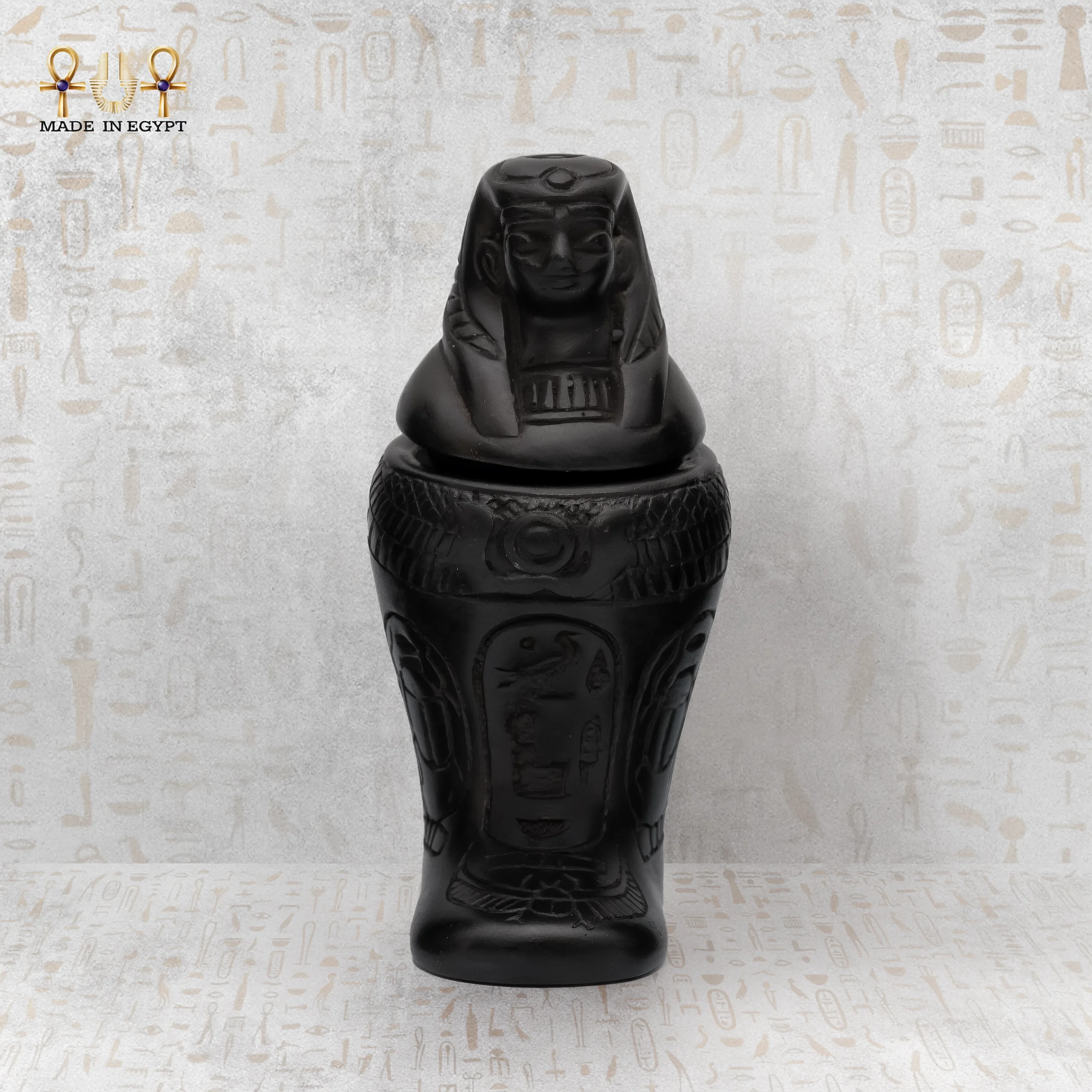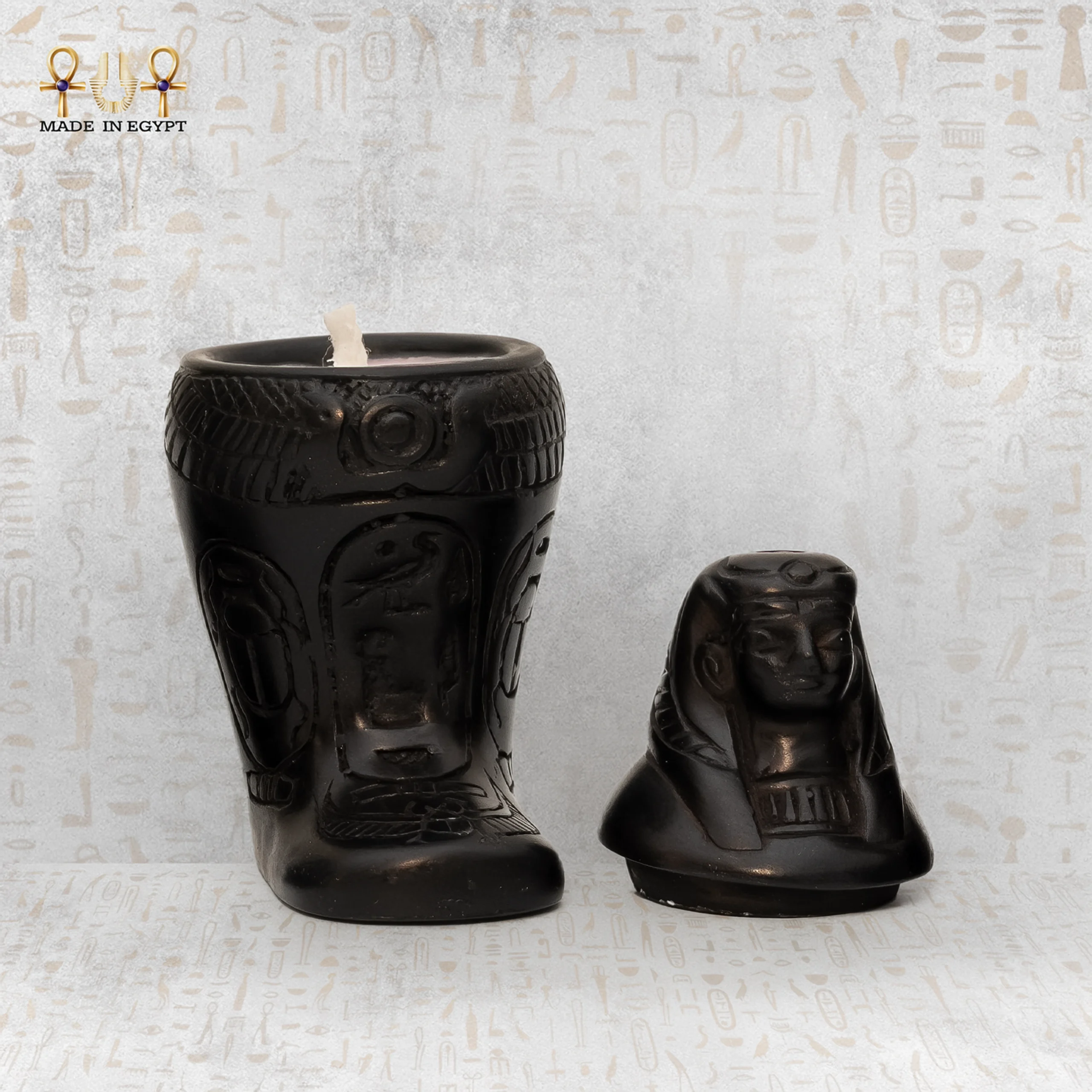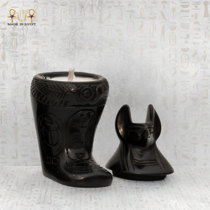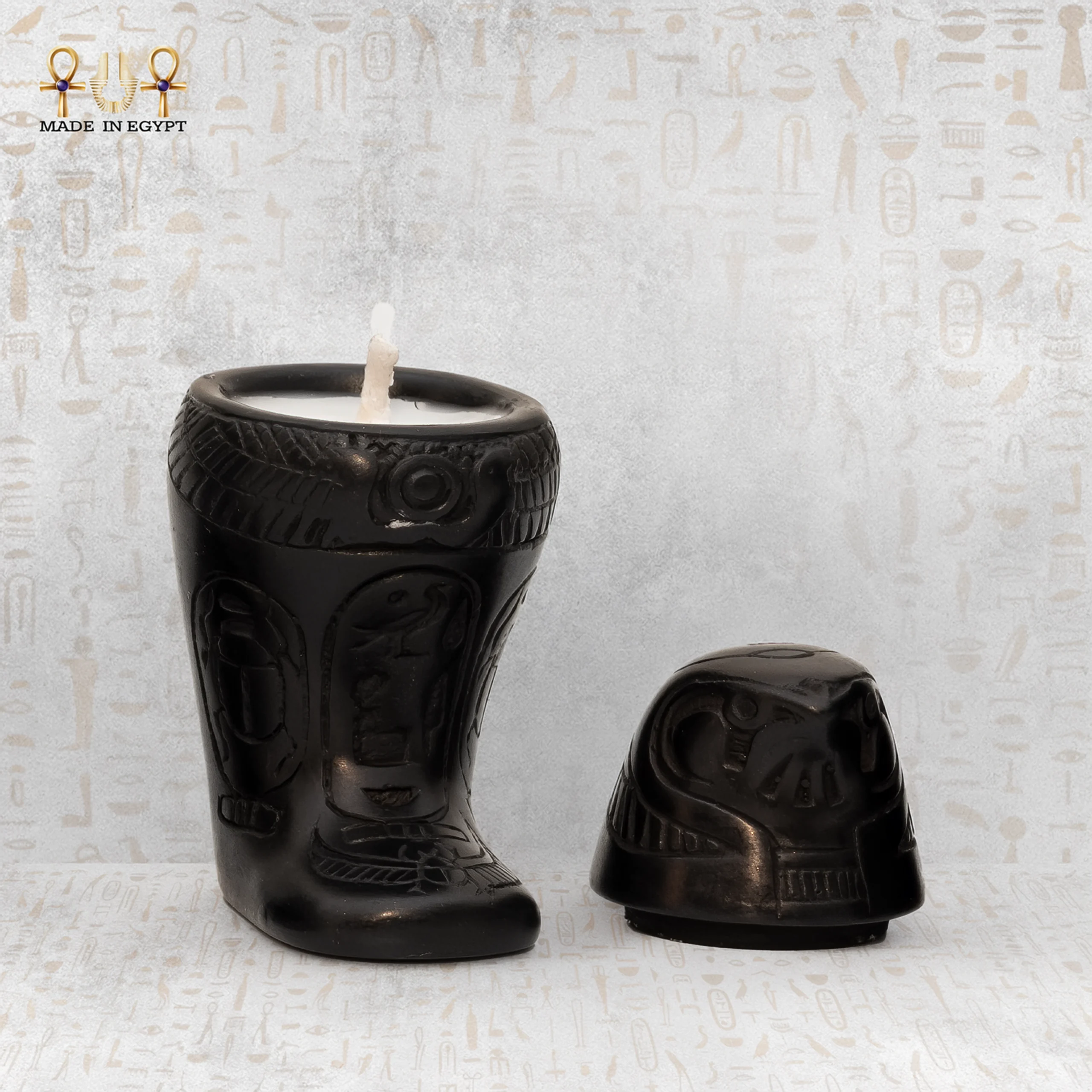 شمعة روح الكانوبي – الفل الأسود هي قطعة ديكور فاخرة تجمع بين الجمال، الرائحة، وروح الحضارة المصرية القديمة. منذ اللحظة الأولى، تعكس شمعة روح الكانوبي – الفل الأسود سحر الأواني الكانوبية وتصميمها الملكي المستوحى من رموز القوة الروحية لدى الفراعنة. تصميمها على شكل قدم كانوبية بنقوش دقيقة يمنحها حضورًا أثريًا لافتًا.