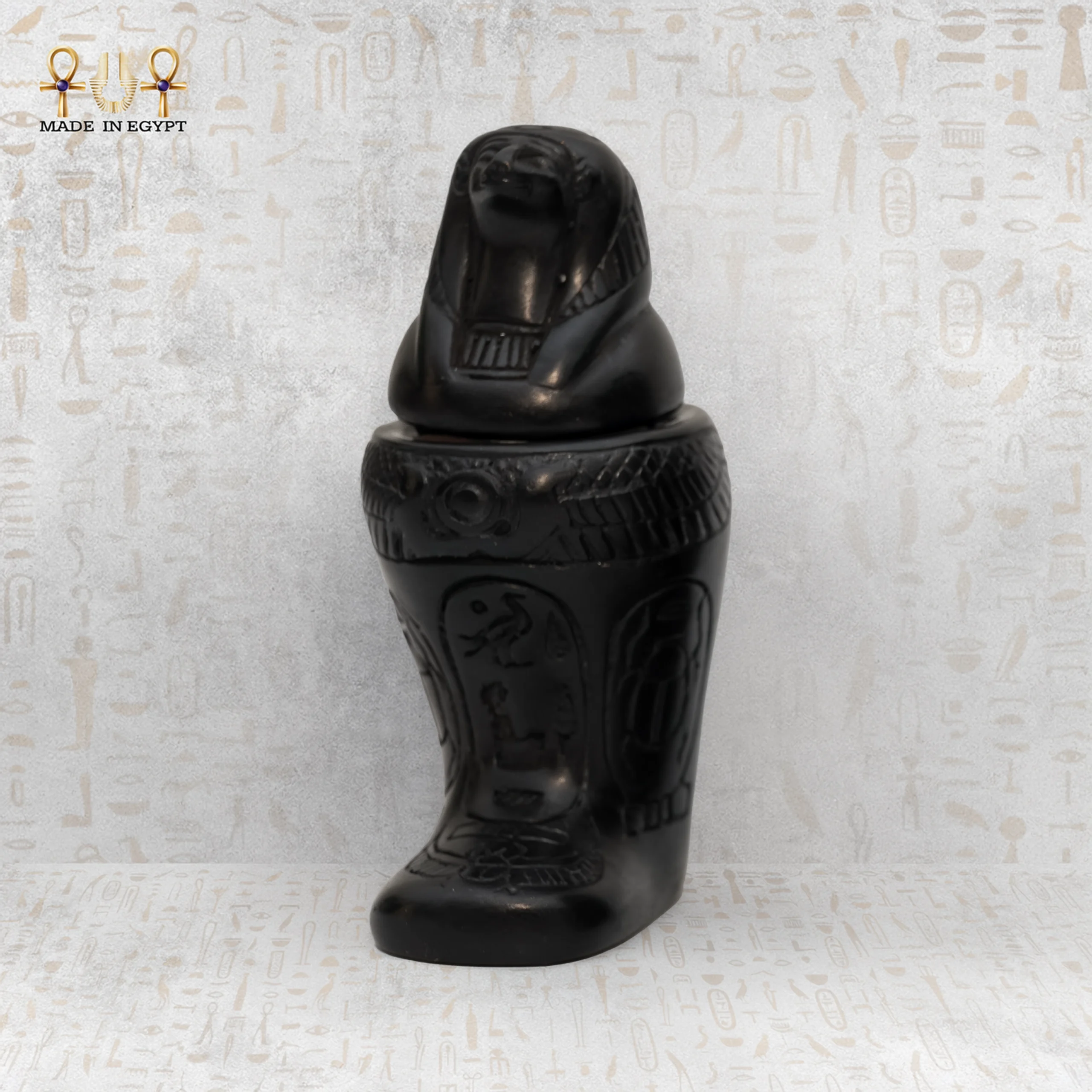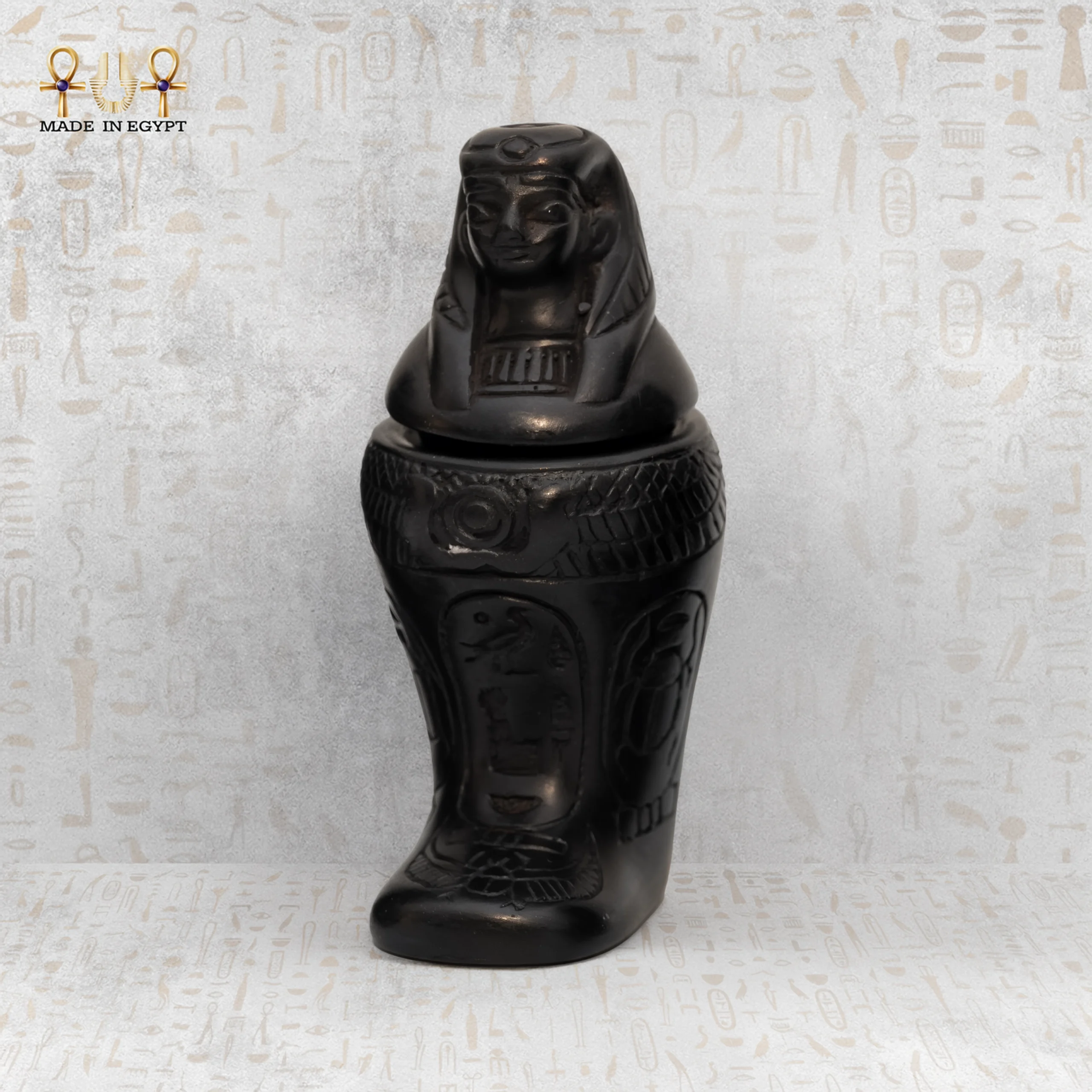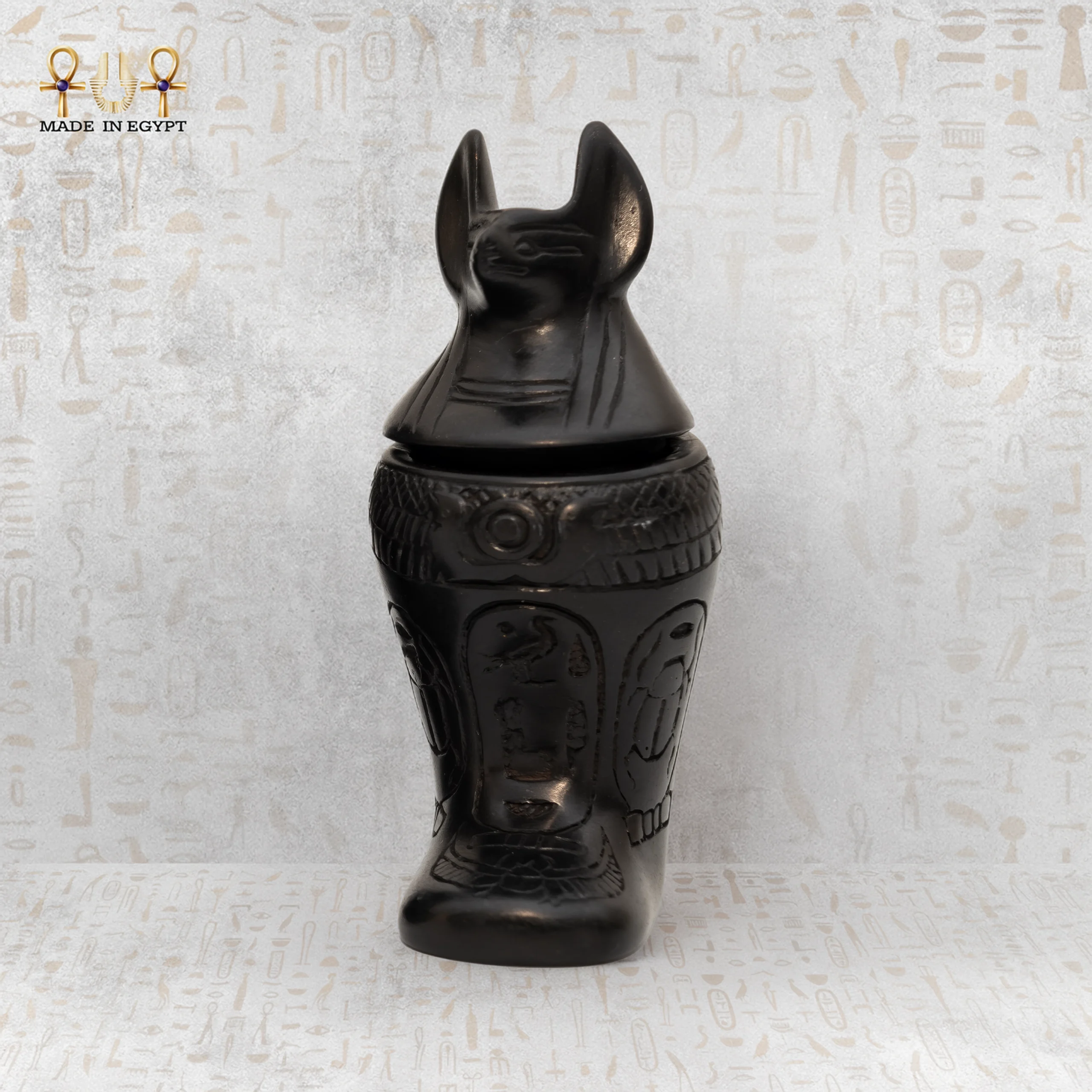 شمعة روح الكانوبي – الفل الأسود هي قطعة ديكور فاخرة تجمع بين الجمال، الرائحة، وروح الحضارة المصرية القديمة. منذ اللحظة الأولى، تعكس شمعة روح الكانوبي – الفل الأسود سحر الأواني الكانوبية وتصميمها الملكي المستوحى من رموز القوة الروحية لدى الفراعنة. تصميمها على شكل قدم كانوبية بنقوش دقيقة يمنحها حضورًا أثريًا لافتًا.