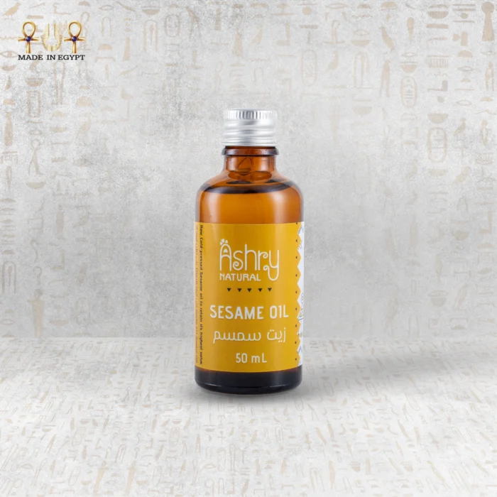 زيت السمسم من أشري ناتشورال منتج طبيعي 100%، خالٍ من الإضافات الصناعية والعطور، ومناسب للاستخدام اليومي.