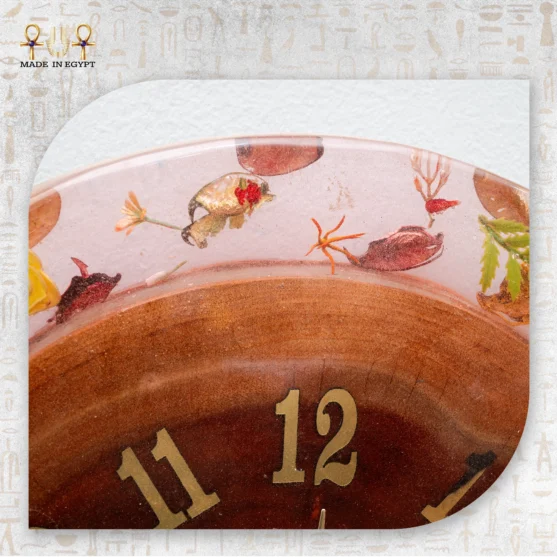 في البداية، ستلاحظين طبقة الريزن الوردي الشفاف. تمنح الساعة لمعانًا زجاجيًا ناعمًا. بالإضافة إلى ذلك، تعكس الضوء بشكل لطيف. لذلك تبدو القطعة أكثر إشراقًا داخل المكان.
