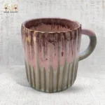 سترب هو كوب فخاري أنيق بتصميم مموّج يجمع بين الأزرق الهادئ والذهبي اللامع ليضفي لمسة فنية راقية على كل لحظة.