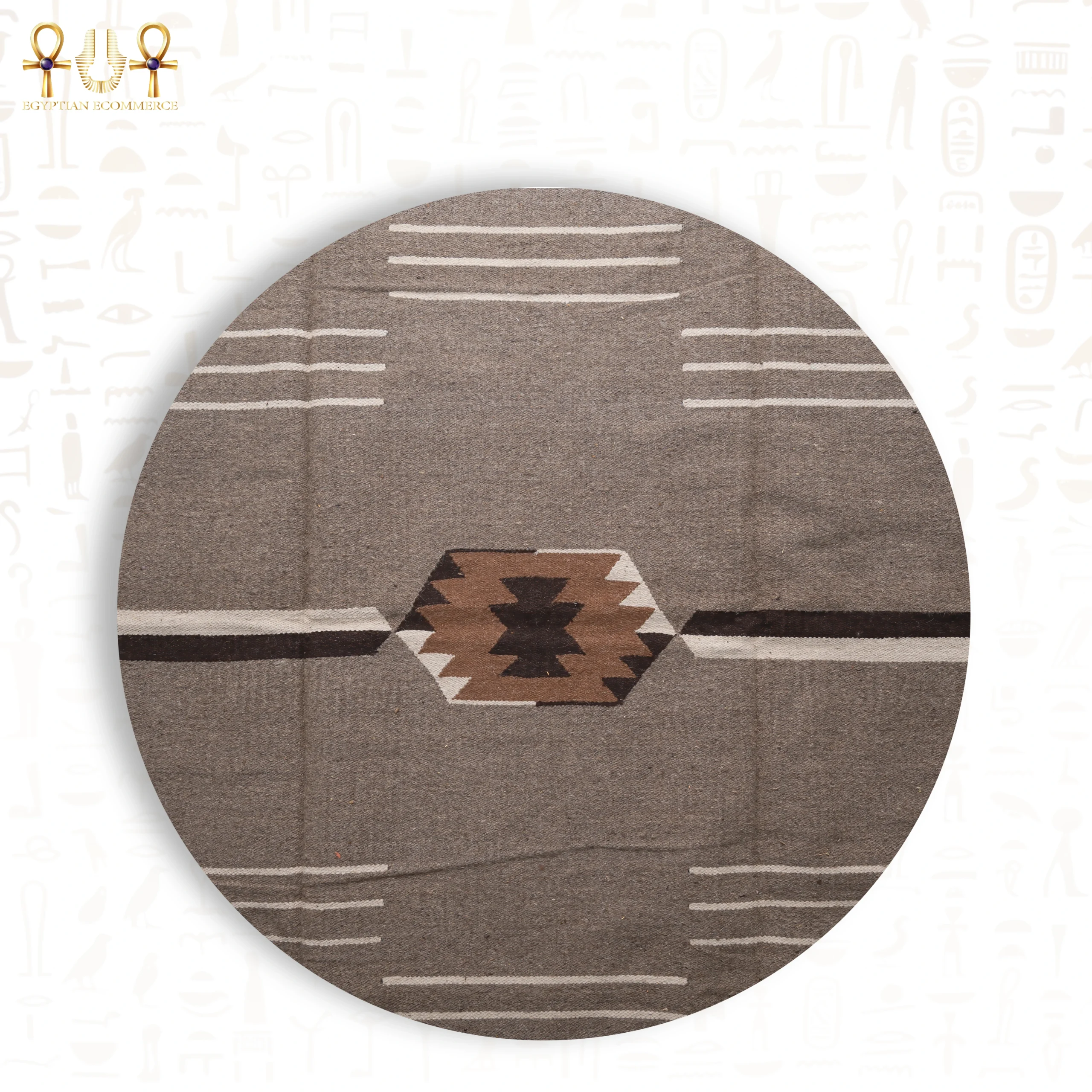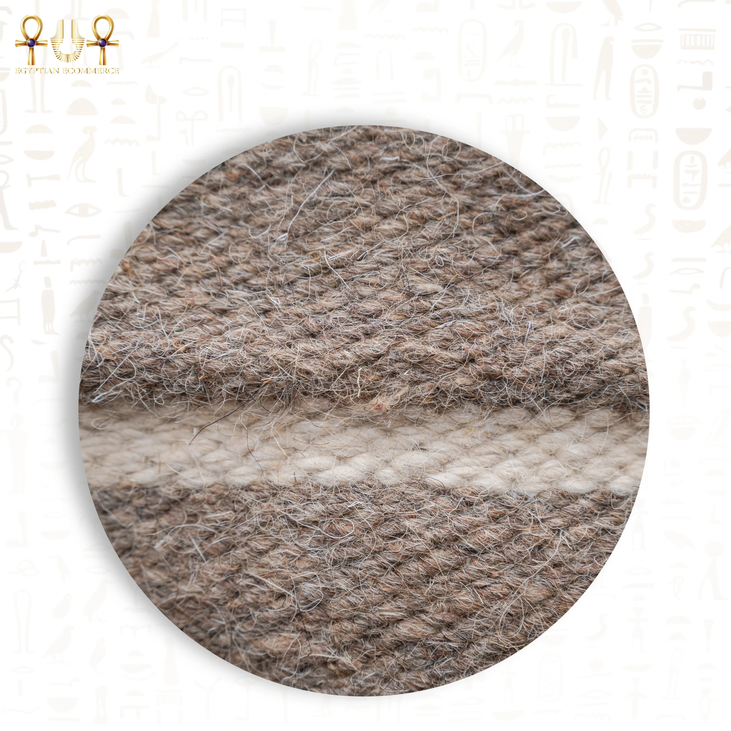 سجادة الكليم التراثية الطبيعية هي أكثر من مجرد قطعة ديكور؛ إنها لمسة فنية تحمل بين خيوطها روح الحرفية المصرية الأصيلة التي توارثها الأجداد جيلًا بعد جيل. صُنعت هذه السجادة يدويًا من الصوف المصري الطبيعي عالي الجودة، مما يمنحها ملمسًا دافئًا وناعمًا ومتانة استثنائية تجعلها تدوم لسنوات طويلة دون أن تفقد رونقها. ألوانها الترابية الهادئة – البني، الأسود، والأبيض – مستوحاة من ألوان الطبيعة المصرية، لتعكس التوازن بين البساطة والأناقة، وتمنح أي مساحة توضع فيها إحساسًا بالدفء والسكينة.