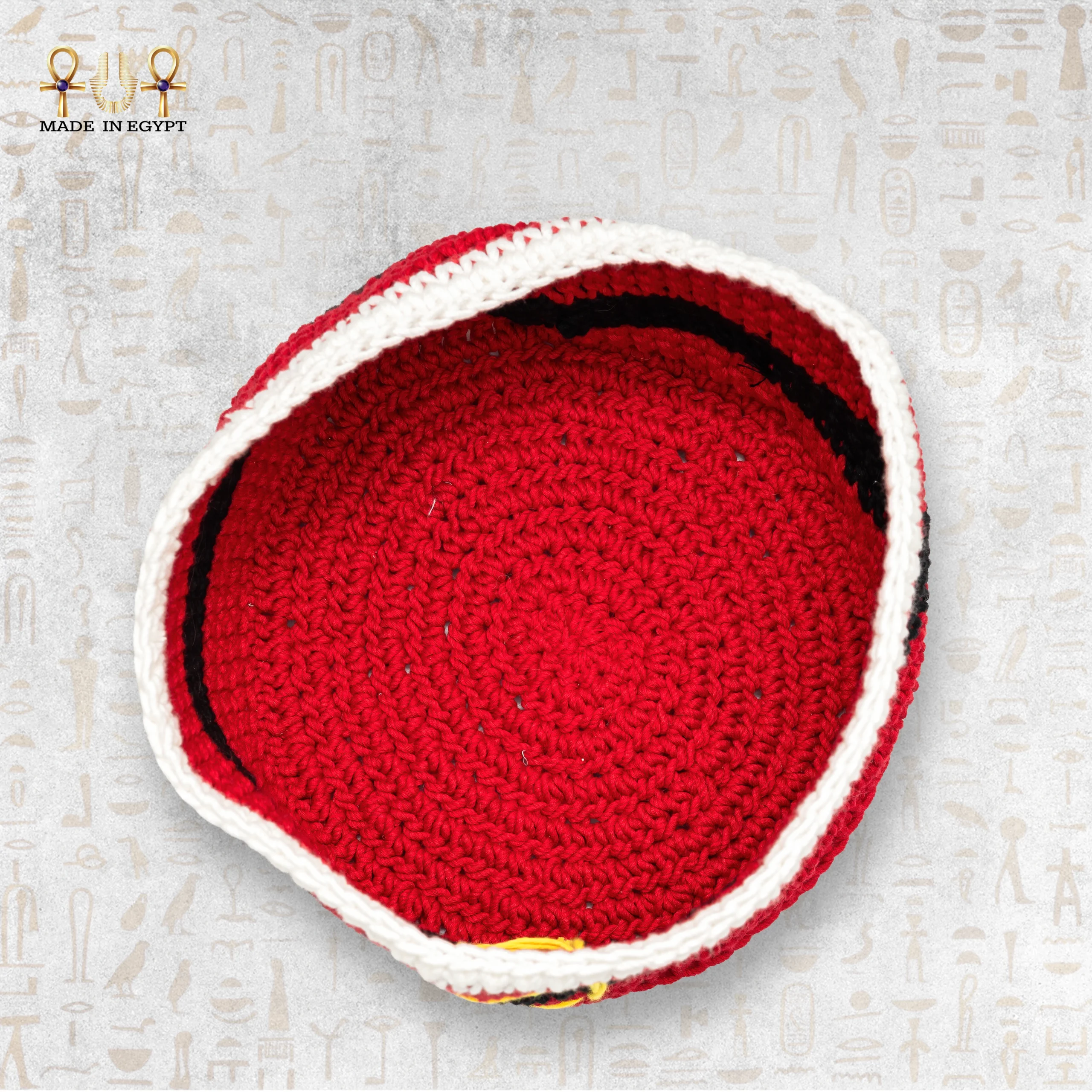 صُنعت سلة سانتا يدويًا باستخدام خيوط قطنية عالية الجودة، مما يجعلها قوية ودائمة، مع الحفاظ على مرونتها ونعومتها. الحياكة المتقنة التي تم استخدامها في صناعة السلة تظهر في كل جزء منها، مما يعكس جودة العمل اليدوي والدقة في التفاصيل. الألوان المستخدمة تتناغم بشكل جميل مع بعضها، حيث يبرز اللون الأحمر الذي يرمز إلى عيد الميلاد، بينما يضيف الأسود لمسة من الأناقة، في حين يضفي الأبيض إحساسًا بالنقاء والبهجة.