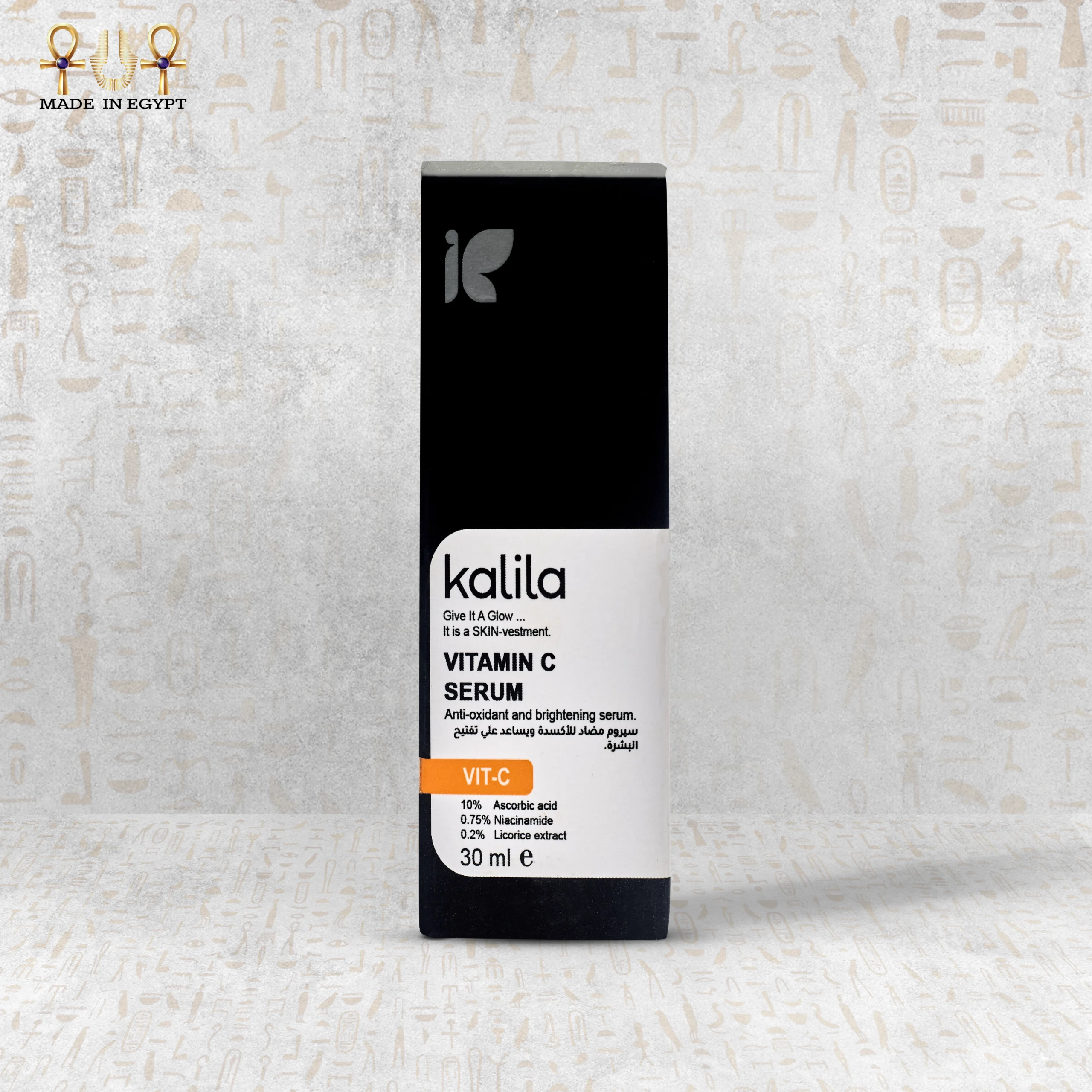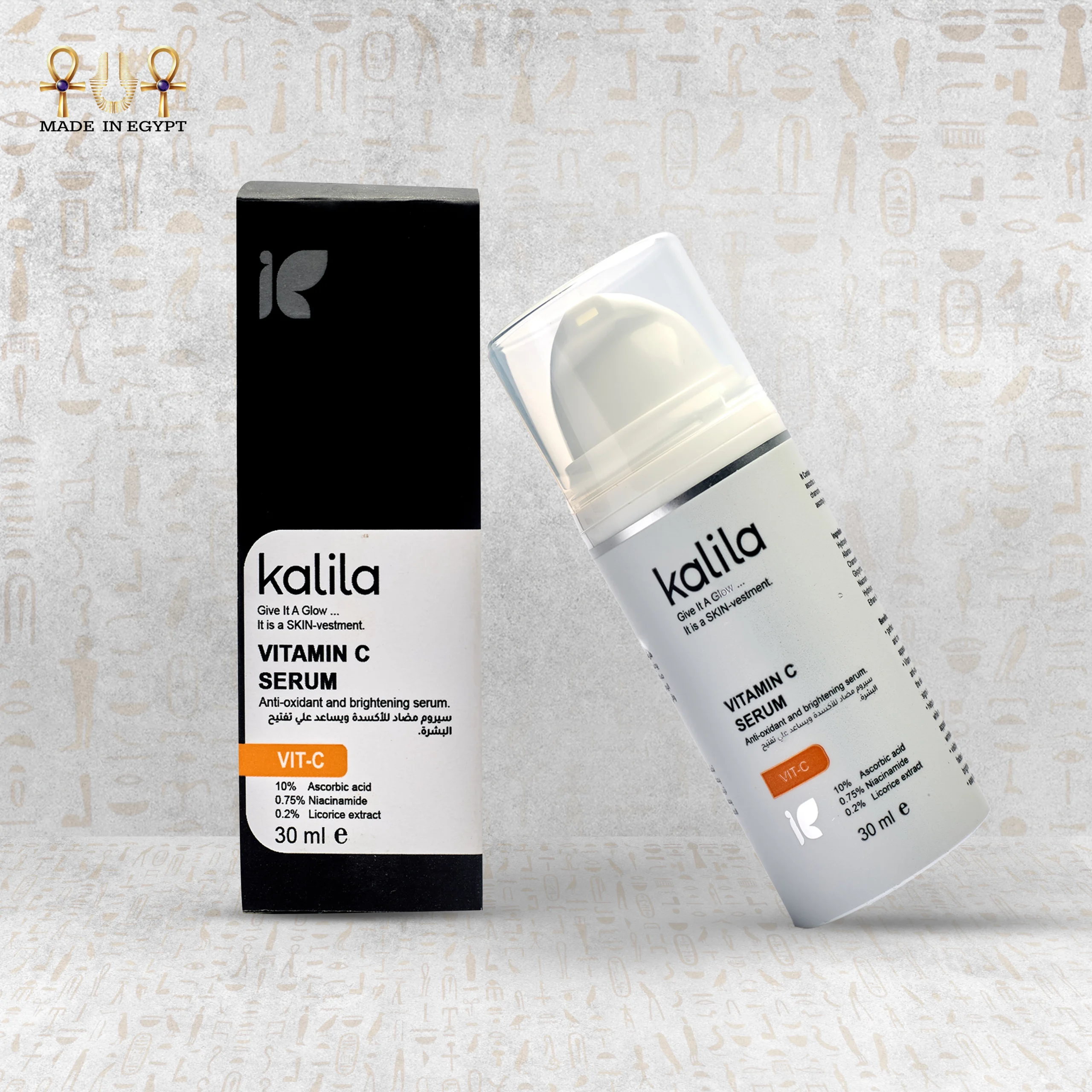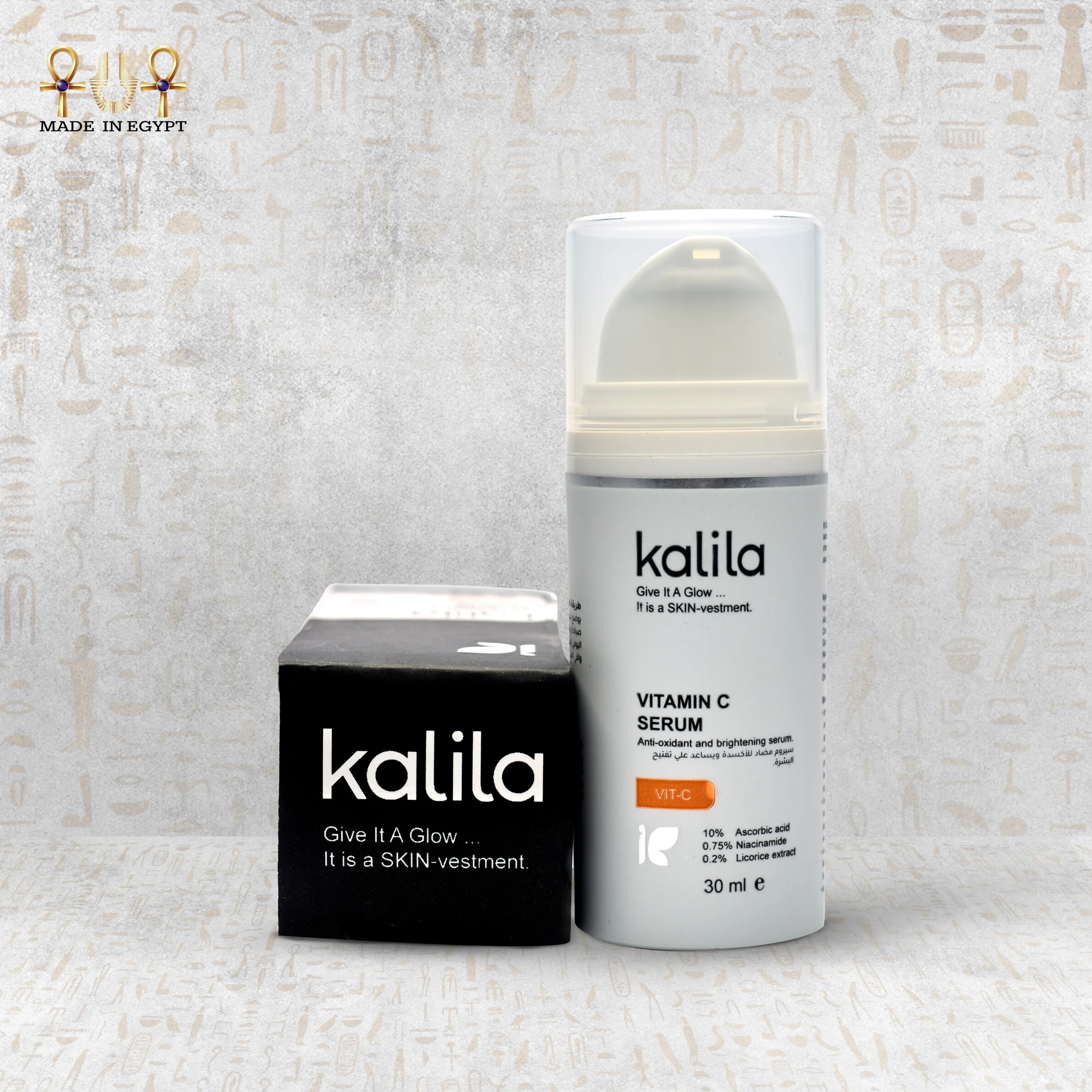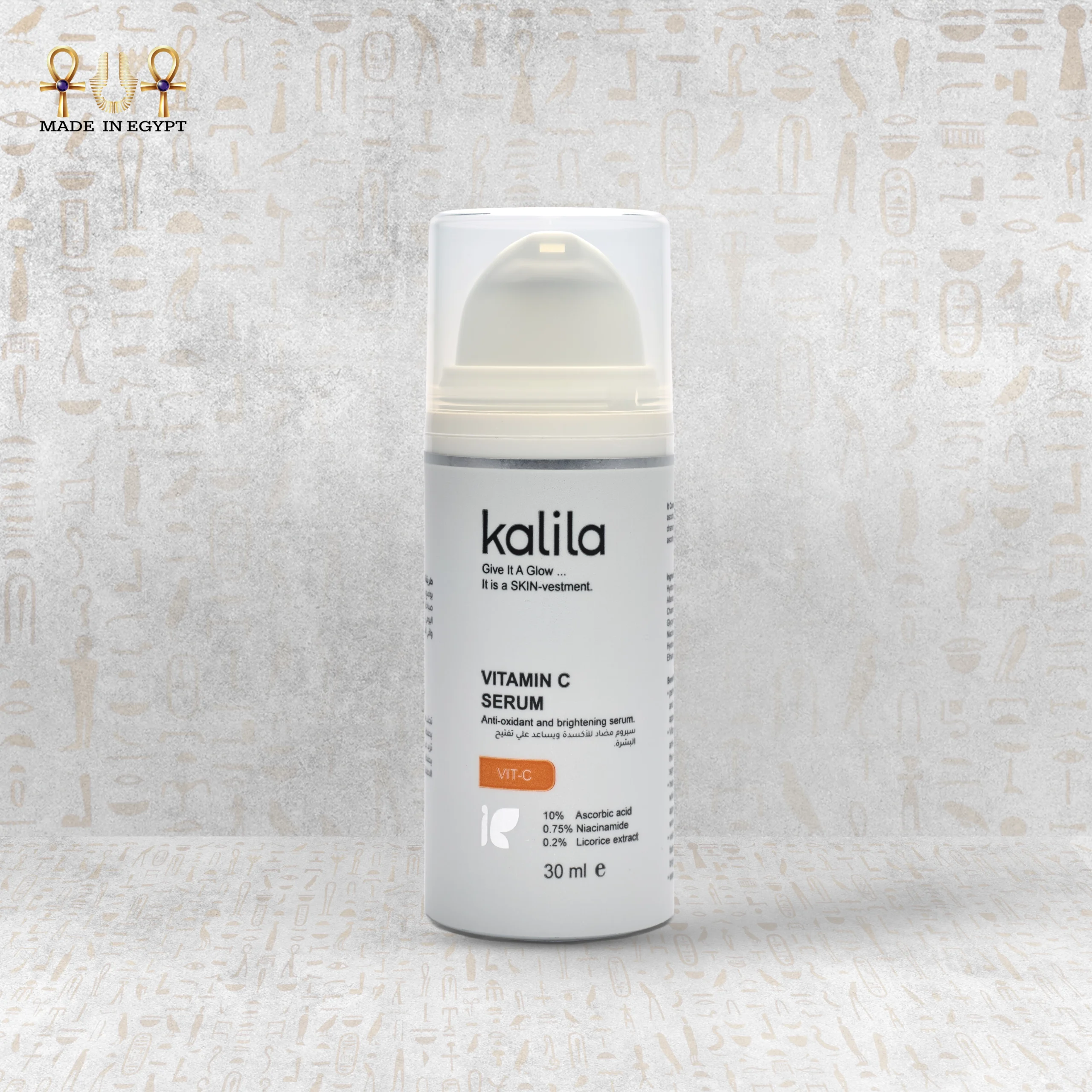 بشرتك تستحق أكثر من العناية العادية، فهي تحتاج إلى روتين يومي يمنحها الحيوية ويعيد إليها النضارة ويعزز إشراقتها الطبيعية. **سيروم فيتامين سي من Kalila** هو تركيبة قوية مضادة للأكسدة صُممت خصيصًا لإحياء البشرة الباهتة، وتفتيح البقع الداكنة، واستعادة التوهج الطبيعي بلون موحد ومشرق. بفضل مكوناته الفعالة، يعمل هذا السيروم بعمق داخل طبقات الجلد لحماية البشرة وإصلاحها وتعزيز جمالها الطبيعي من الداخل إلى الخارج.