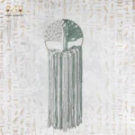 بالإضافة إلى ذلك، تتدلى من أسفل القطعة خيوط مكرمية طويلة تضيف انسيابية وأناقة إلى التصميم. هذه اللمسة تمنحها عمقًا بصريًا مريحًا للعين. كما أنها تجعلها مثالية لتعليقها في غرف المعيشة أو النوم أو حتى في مساحات التأمل واليوغا. فهي تبعث على الهدوء وتخلق طاقة إيجابية في المكان، لتصبح مركزًا للجمال في أي زاوية تُعلق فيها.