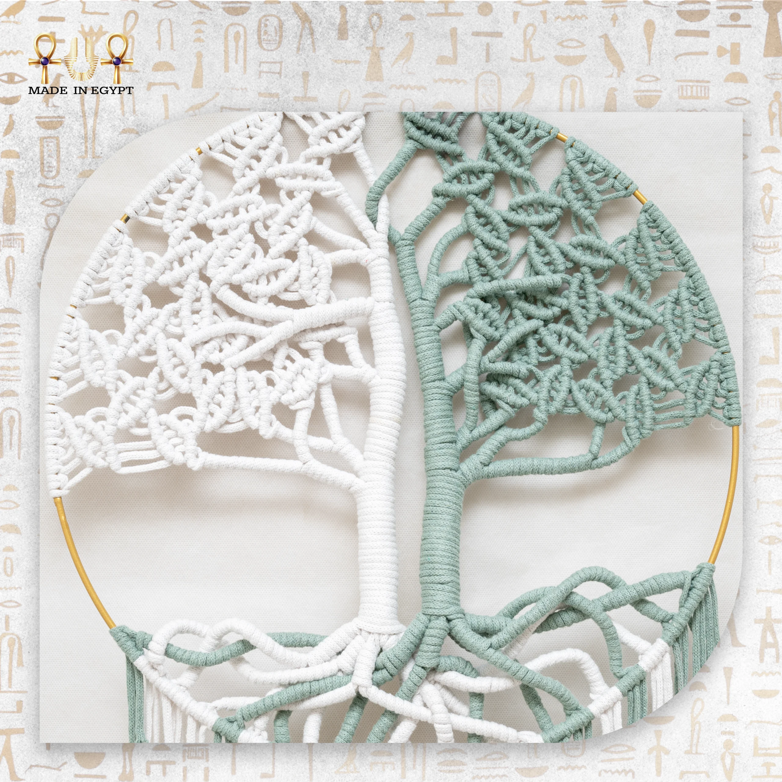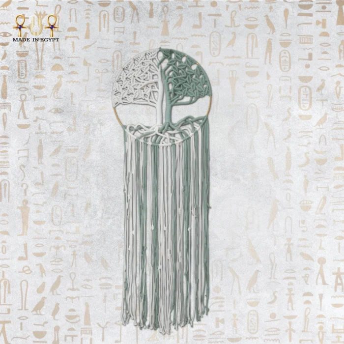 من ناحية أخرى، تتميز Tree of Harmony Macrame Wall Hanging بأنها مصنوعة يدويًا بالكامل على يد حرفيين مصريين مهرة. لذلك، لا توجد قطعتان متماثلتان تمامًا، فكل عمل يحمل بصمته الخاصة ولمسته الفنية الفريدة. هذا ما يجعلها هدية مميزة لمحبي الديكور الطبيعي والمنتجات المصنوعة يدويًا.