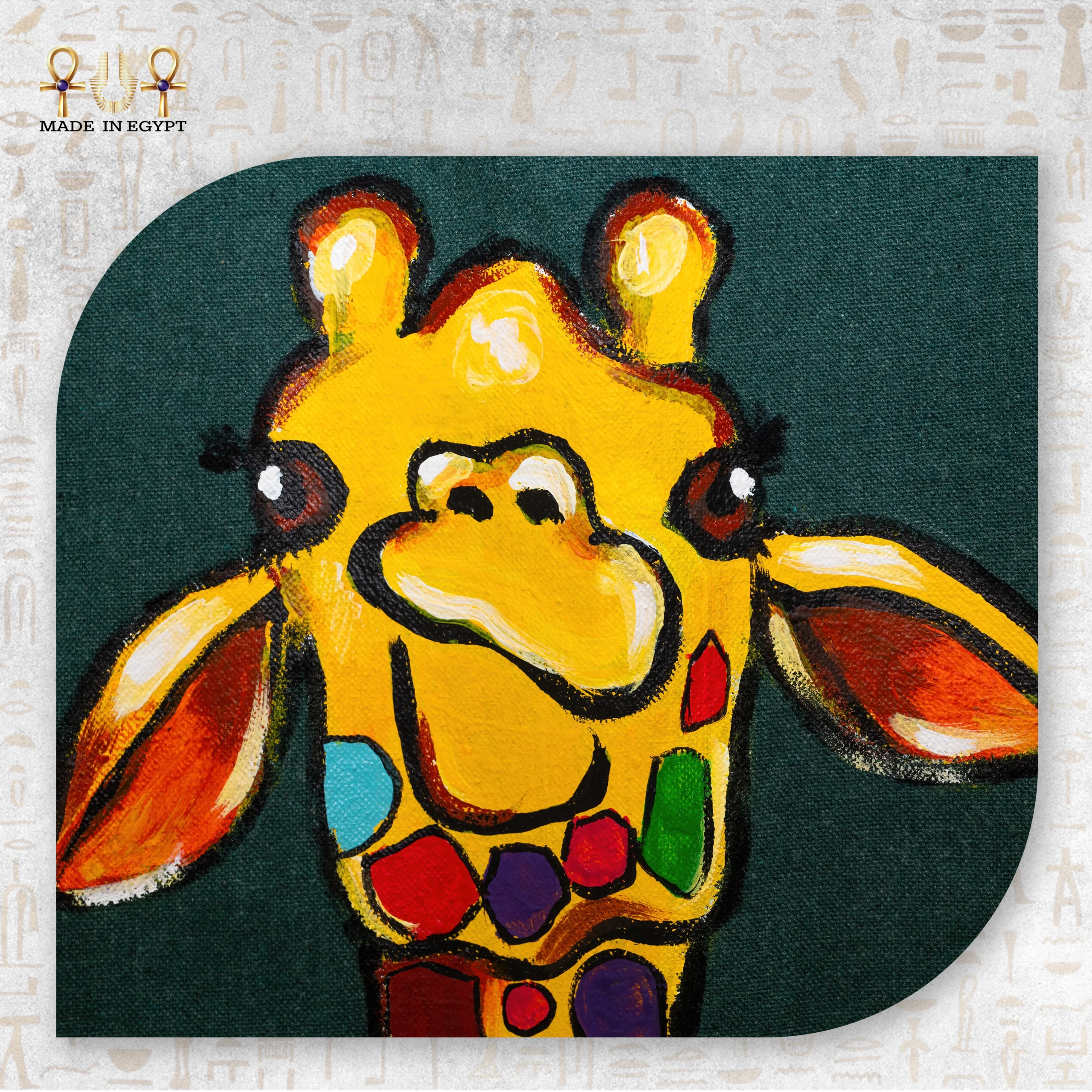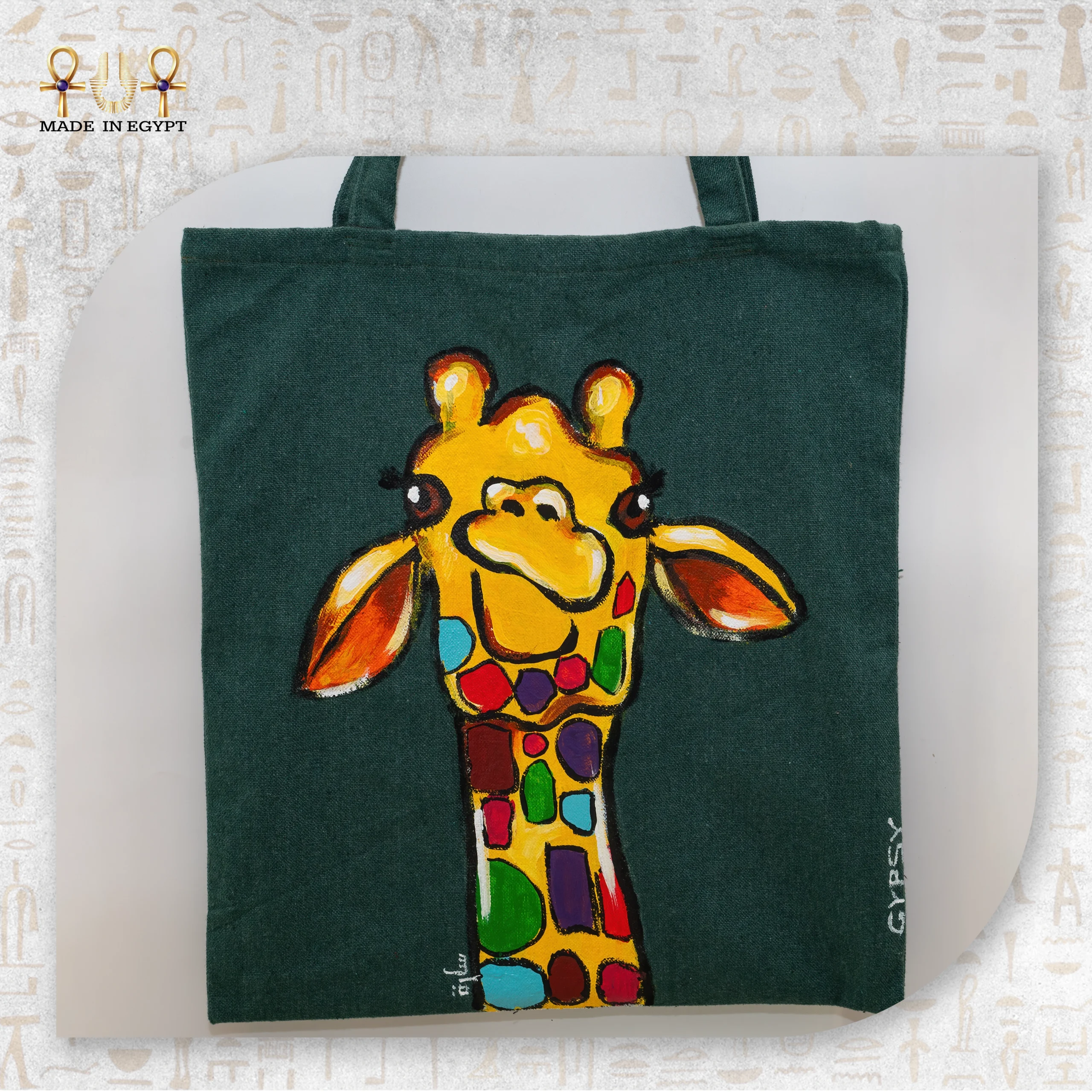 شنطة الزرافة المبهجة هي قطعة فنية مليئة بالحياة والطاقة الإيجابية، صُممت لتضيف لمسة من البهجة والمرح إلى أسلوبك اليومي. يتميز التصميم برسم زرافة مرسومة يدويًا بتفاصيل بسيطة وناعمة، مع ألوان زاهية تعكس الطفولة، الحرية، والروح المرحة. تعبير الوجه والنظرة اللطيفة يجعلان الشنطة جذابة ومحببة من أول نظرة.
