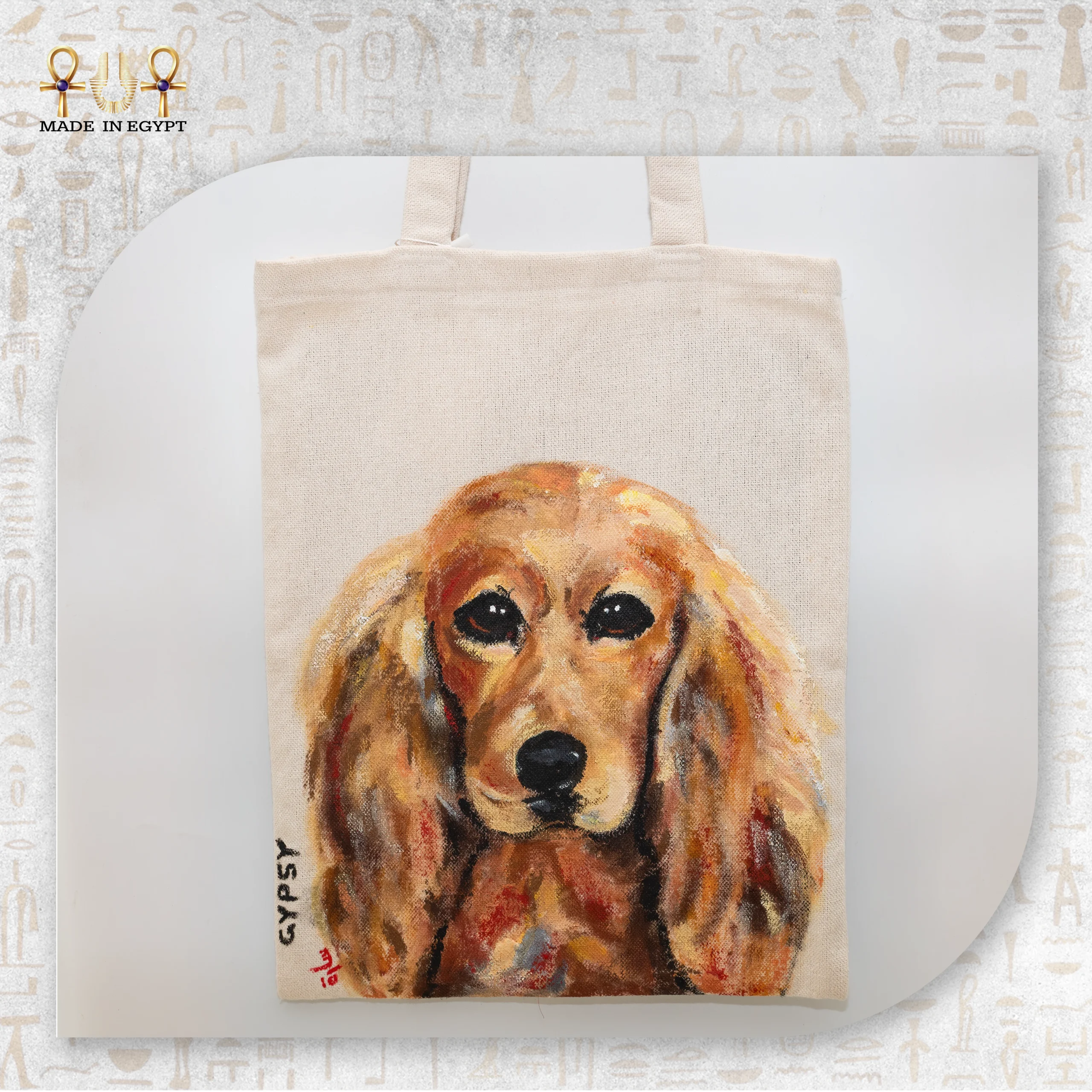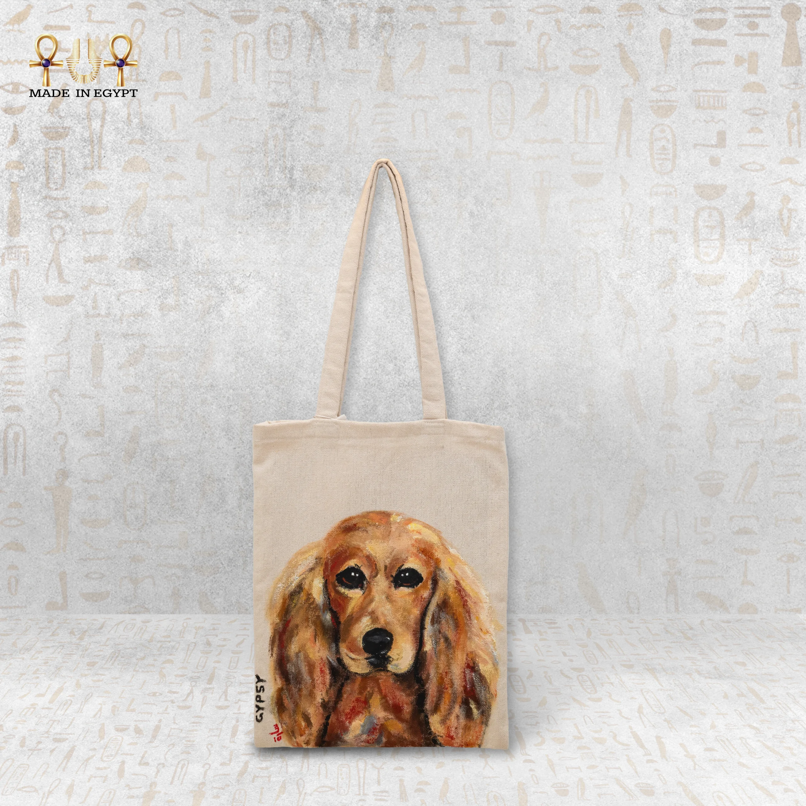 شنطة الكلب اللطيف هي قطعة فنية تجمع بين البساطة، العملية، والمشاعر الدافئة. صُنعت الشنطة من قماش قطني متين عالي الجودة، لتكون مناسبة للاستخدام اليومي مع الحفاظ على شكلها ومتانتها مع مرور الوقت. التصميم الأساسي عبارة عن لوحة مرسومة يدويًا لكلب بملامح لطيفة ونظرة هادئة، تعبّر عن الحنان والوفاء والروح الودودة.