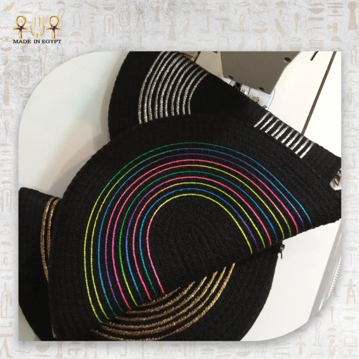 الخيوط الملونة تضيف حيوية ومرح، بينما الخيوط المعدنية باللون الذهبي والفضي تعطي لمسة أنيقة تناسب أي outfit كاجوال أو شيك. بالإضافة إلى ذلك، تحتوي الحقيبة على سوستة داخلية لحماية الأغراض وتأمينها دائمًا.