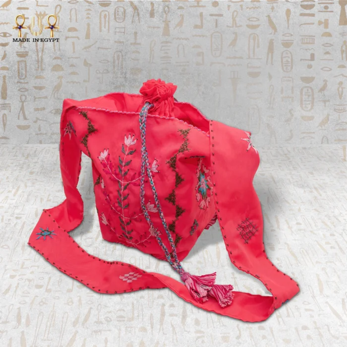 شنطة سبرينج بلوسِم هي تصميم فريد يعكس إبداعًا استثنائيًا في دمج الحرفية اليدوية مع لمسة عصرية مبهرة. تم تصنيعها بعناية من خامات عالية الجودة، حيث يتناغم اللون الأحمر الزاهي مع التطريز اليدوي الدقيق الذي يعكس روح الثقافة المصرية العريقة. بالإضافة إلى ذلك، تضيف تفاصيل التطريز لمسة من الحيوية والأنوثة تجعل الحقيبة ملفتة للأنظار في أي مناسبة.