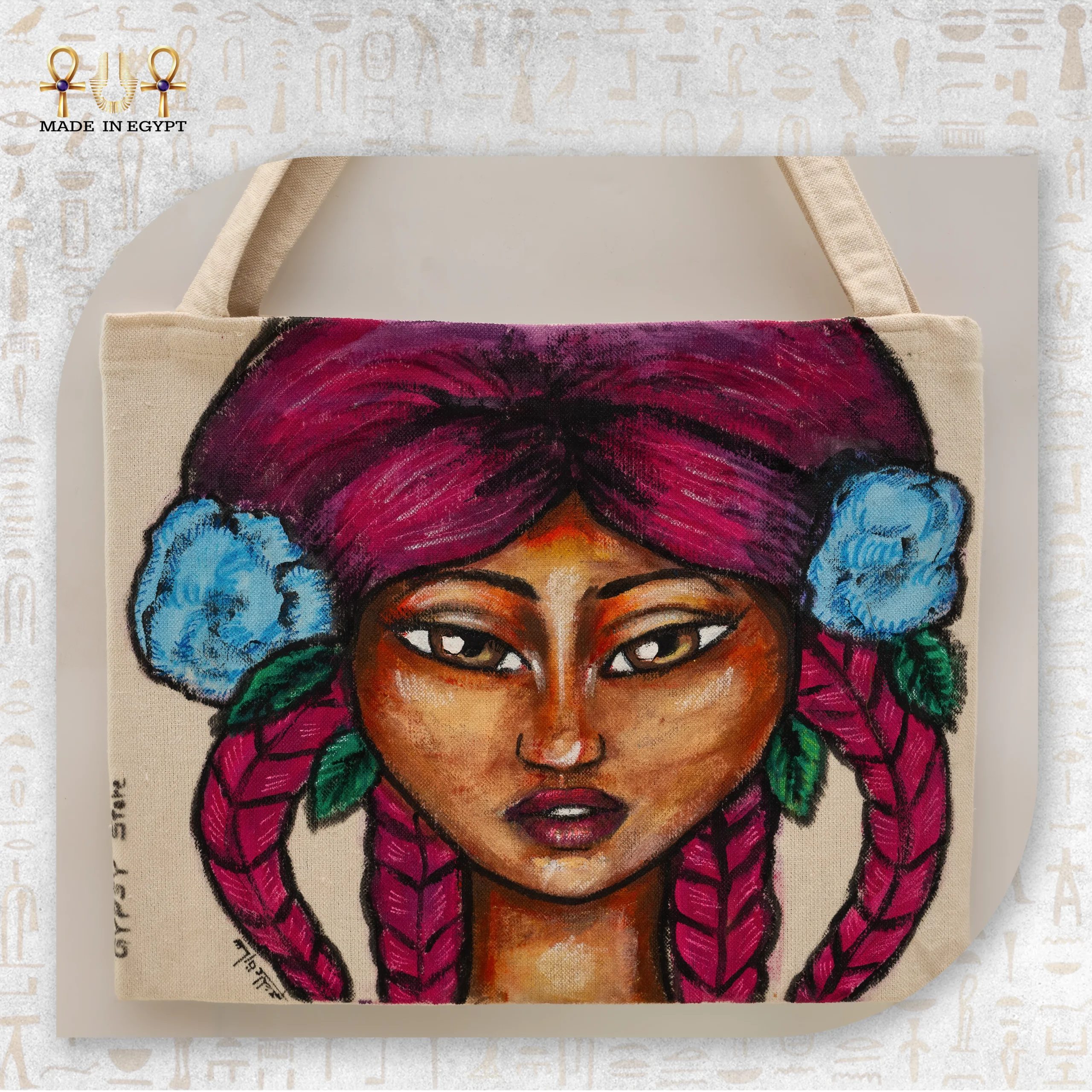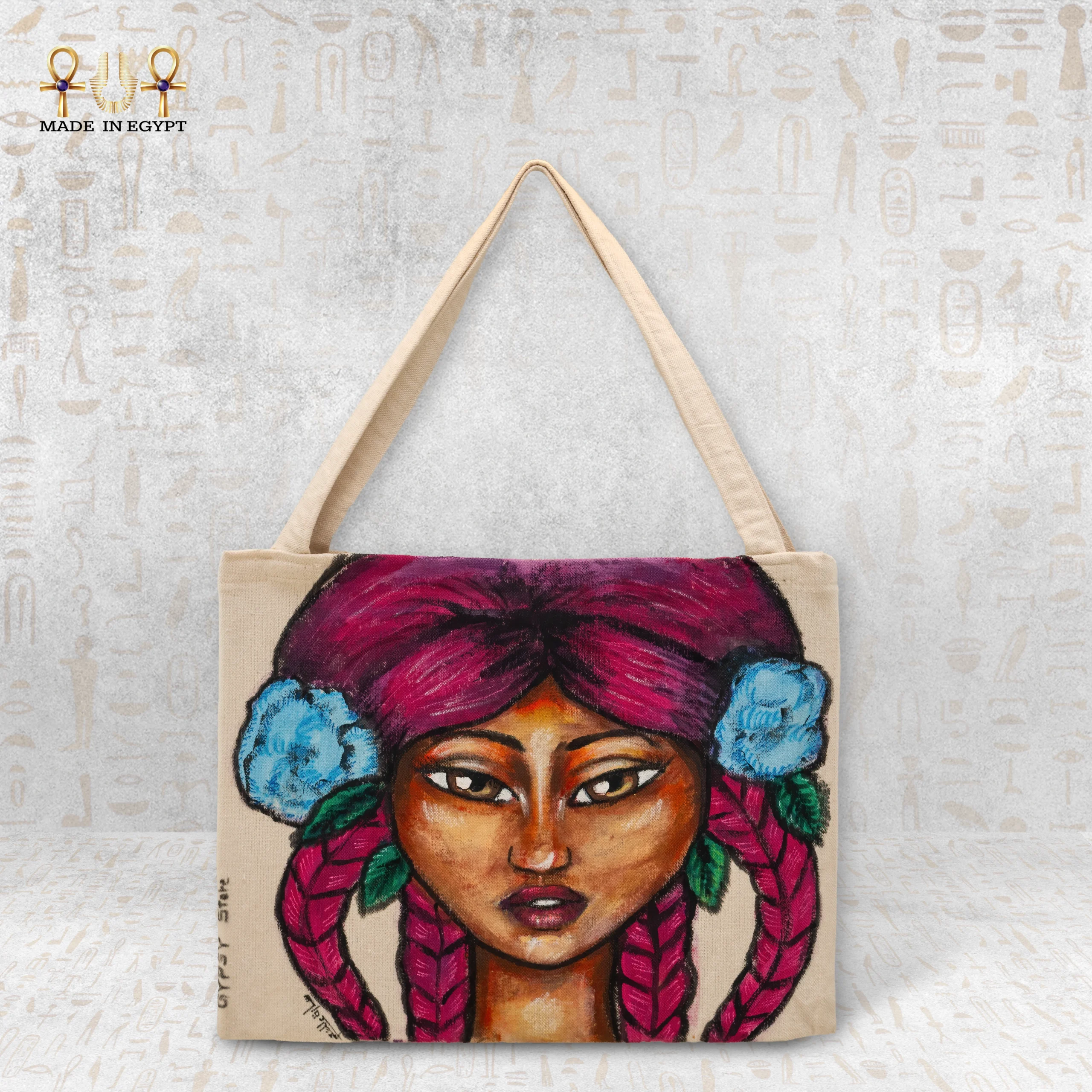 شنطة قماش فتاة الزهور هي خياركِ المثالي لإضافة لمسة فنية لإطلالتك اليومية. مصممة من قماش عالي الجودة، تأتي الشنطة مزينة برسمة فنية لفتاة ذات شعر مضفر مع زهور زرقاء، مما يضفي عليها جمالًا وحيوية. هذا التصميم الفريد يخلق مزيجًا بين الجمال البسيط والإبداع الفني الذي يعكس شخصيتكِ العصرية.