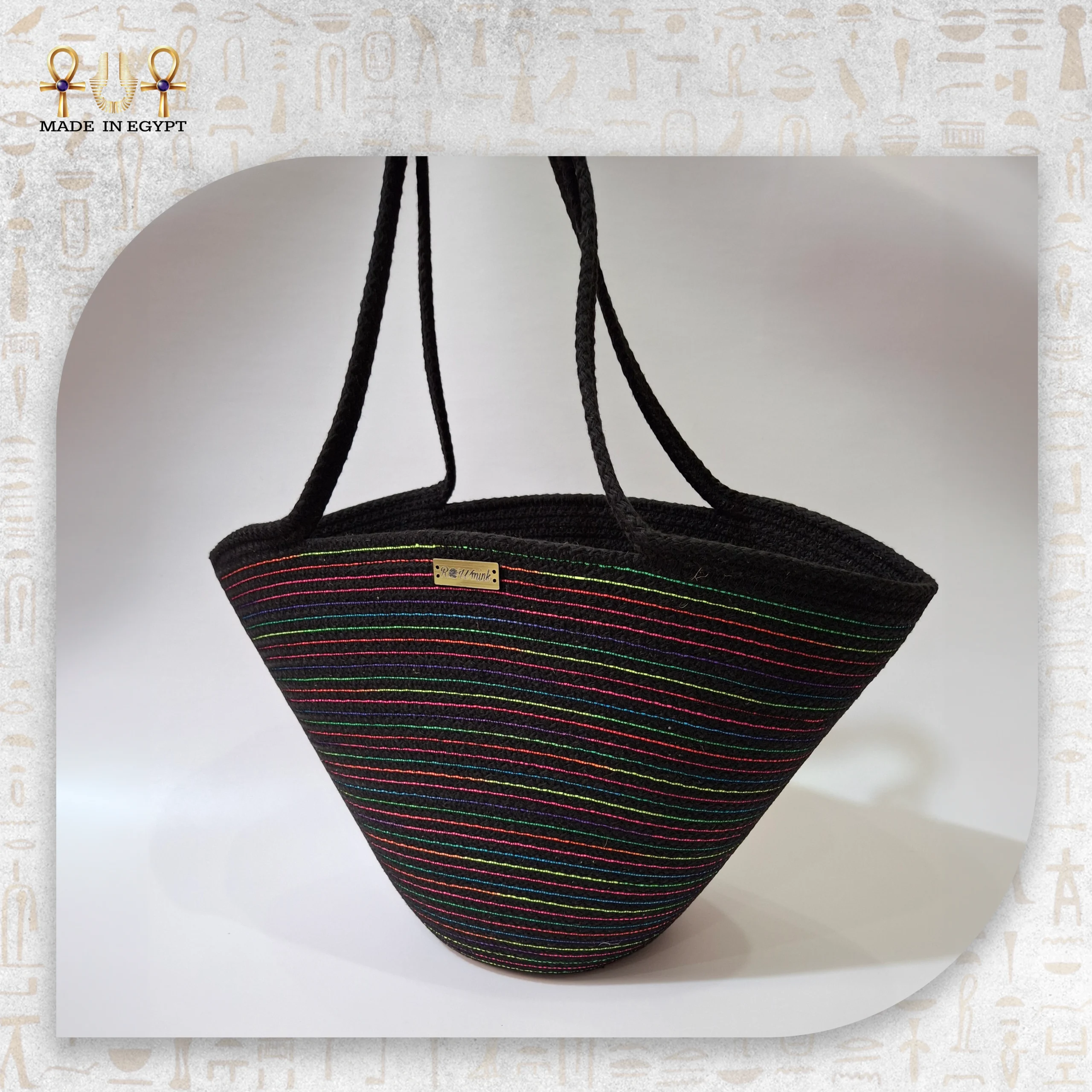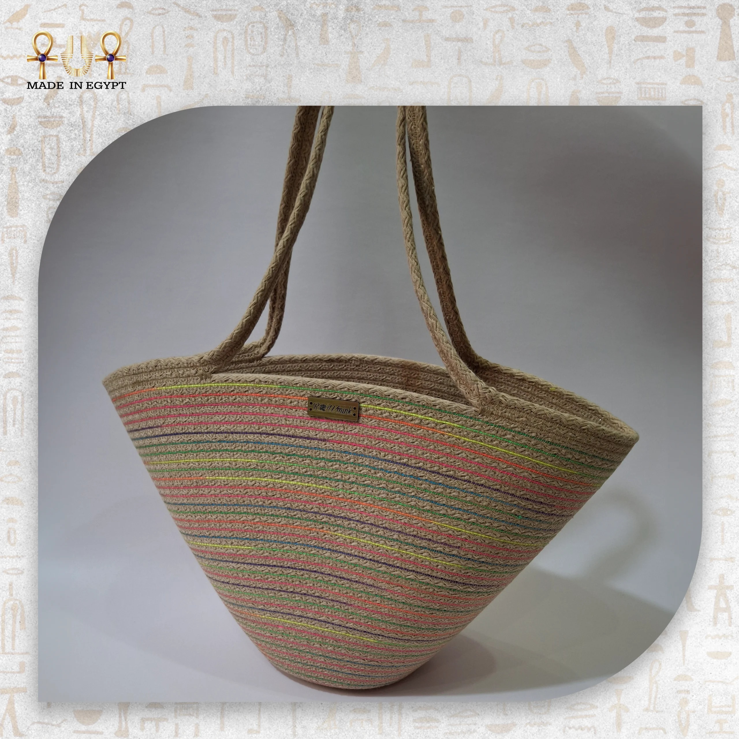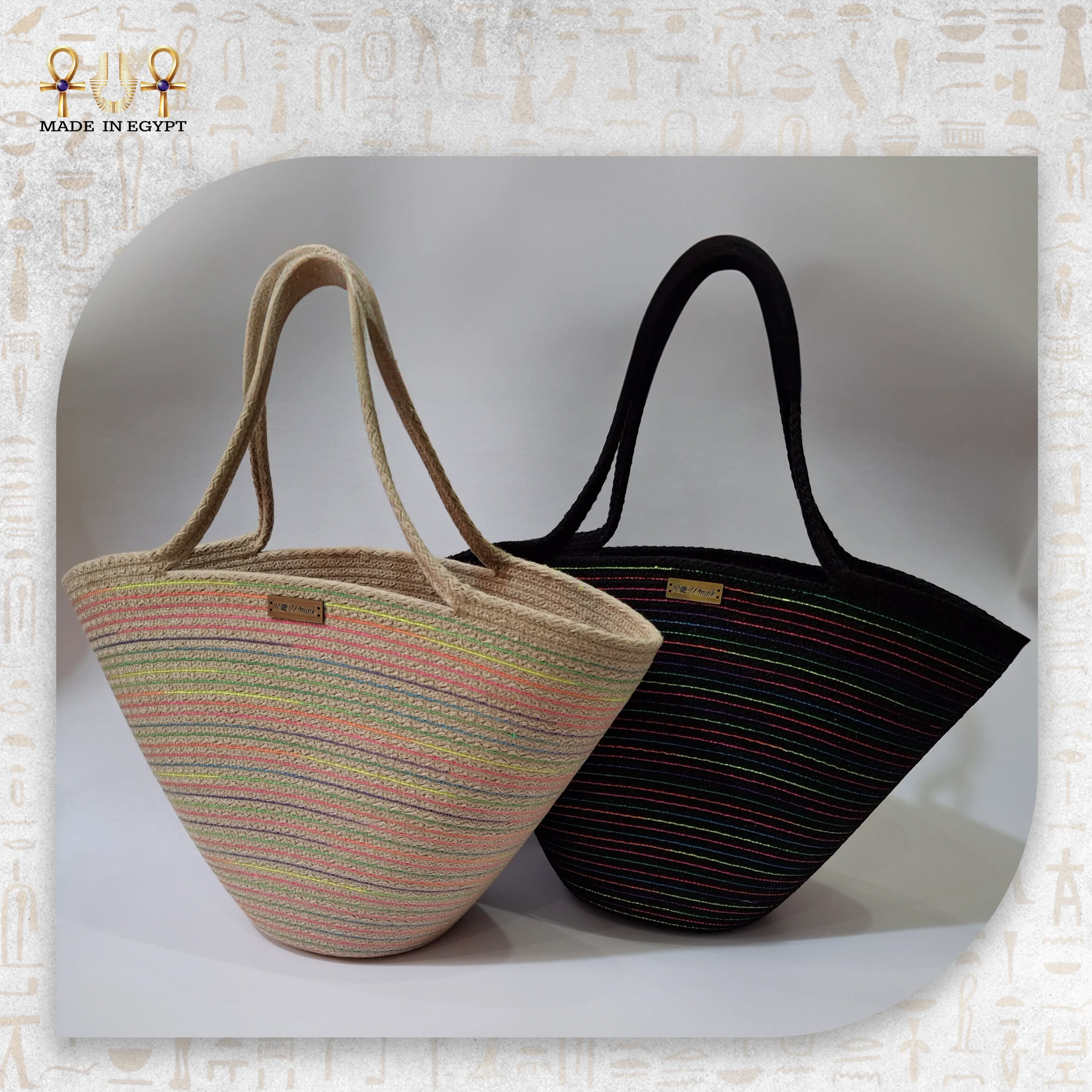 شنطة كتف قش مخططة – حقيبة يدوية مصرية عملية وعصرية