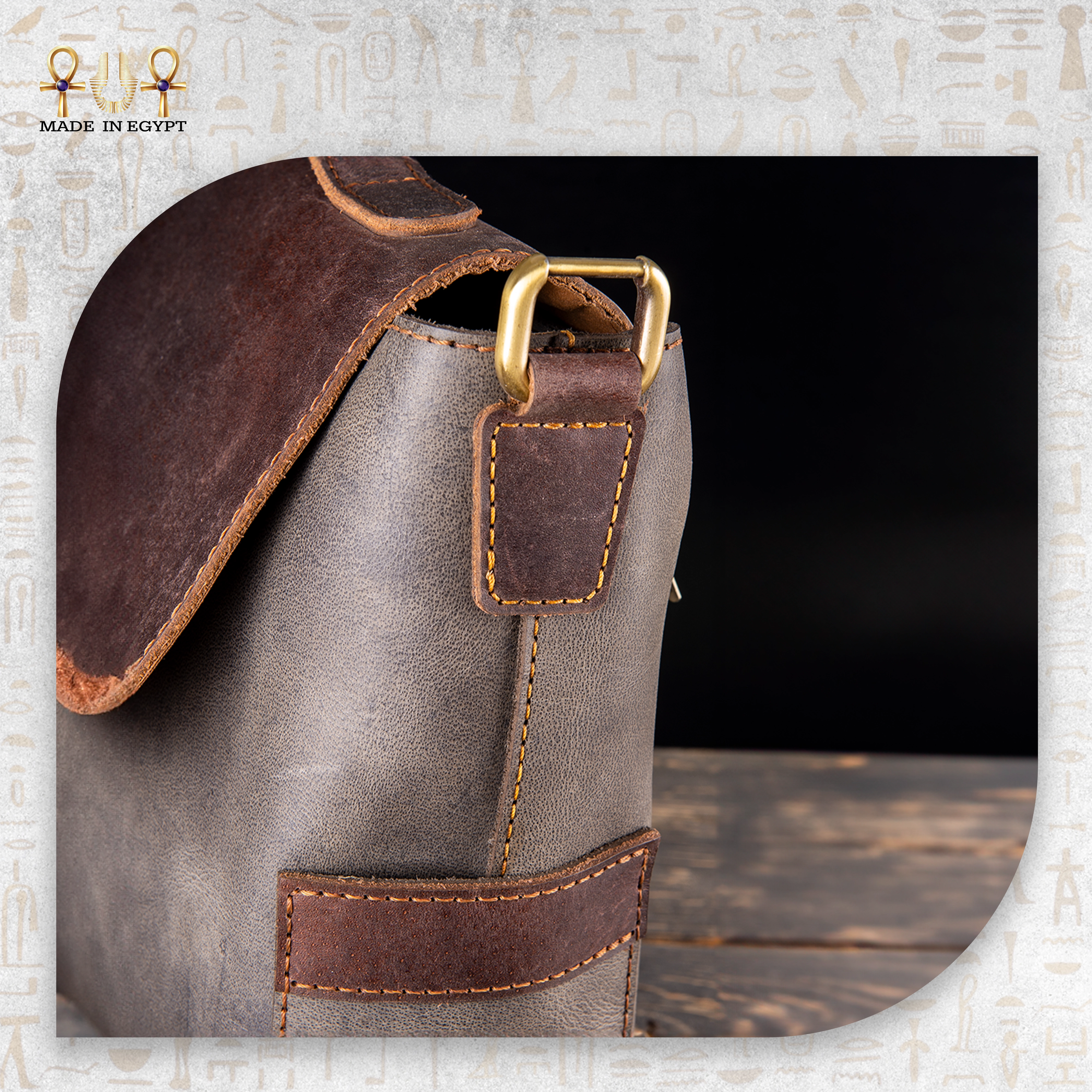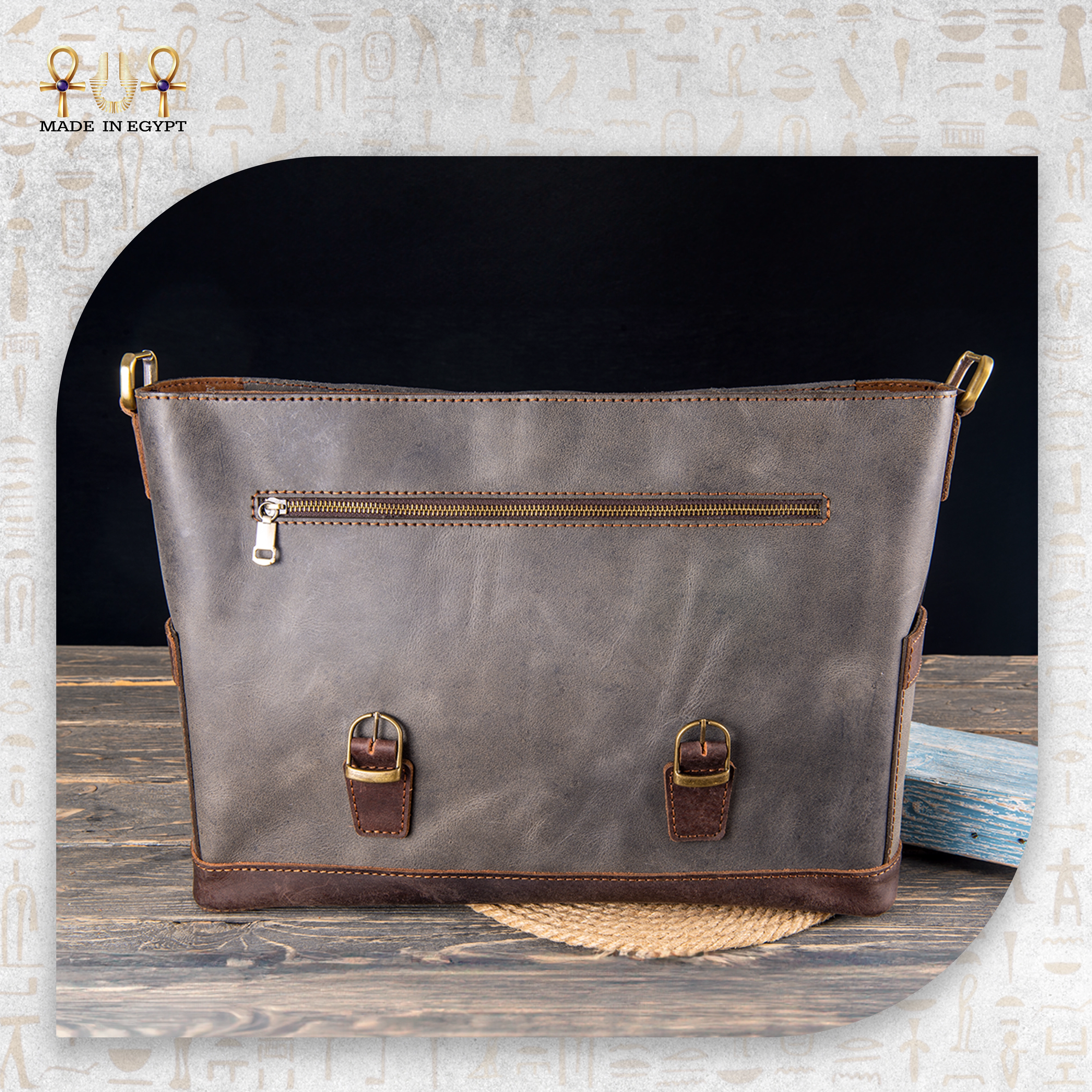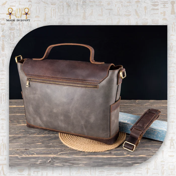 شنطة لابتوب فاخرة مصنوعة يدويًا من جلد طبيعي بلمسة معتّقة، وهو جلد معروف بمتانته العالية ومظهره الكلاسيكي الذي يزداد جمالًا مع مرور الوقت. لذلك، تمنحك الشنطة إحساسًا بالفخامة من أول لمسة. كما يتميز الجلد بملمس ناعم وتدرجات طبيعية تجعل كل قطعة مختلفة عن الأخرى، وبالتالي تحصل على شنطة لها طابع خاص لا يتكرر.