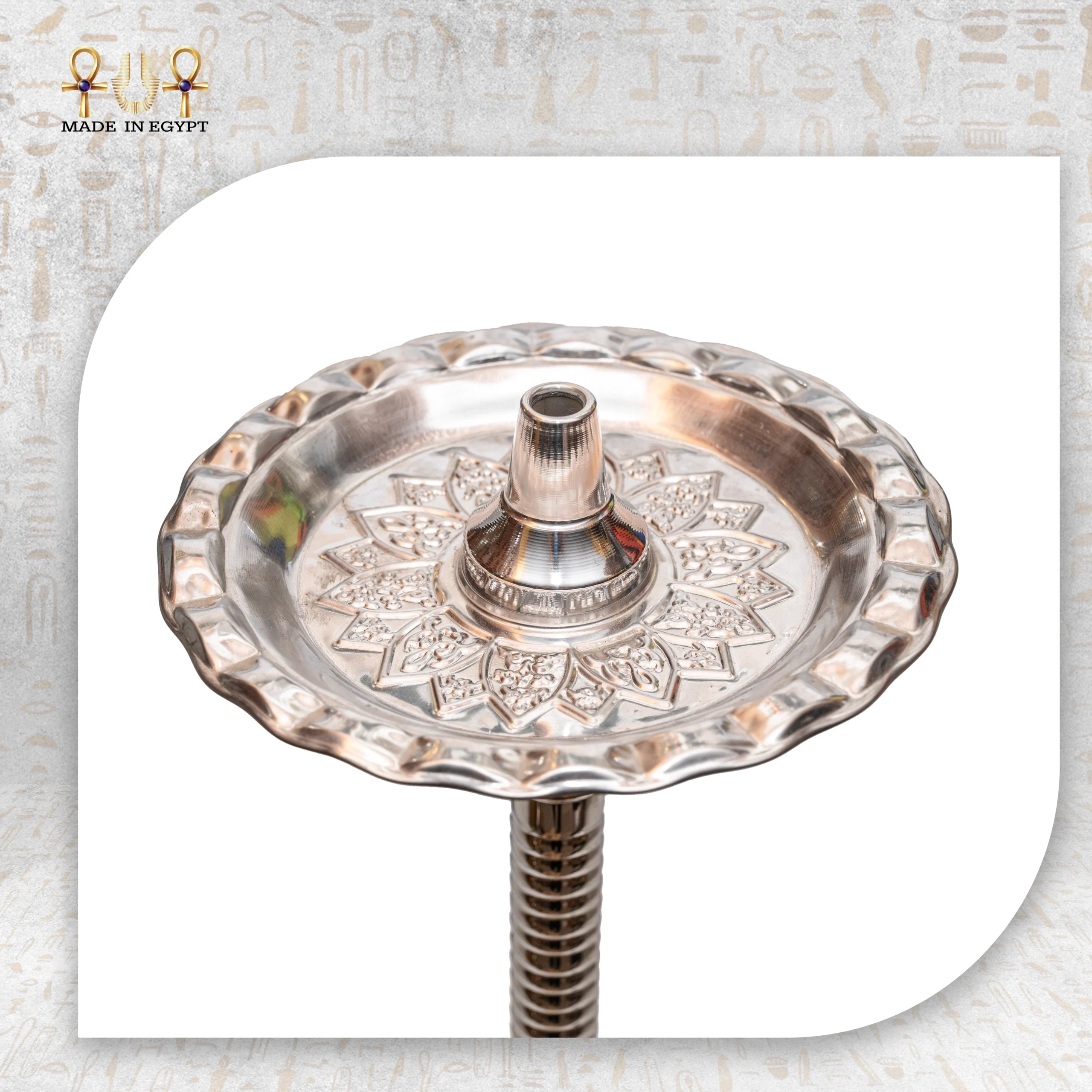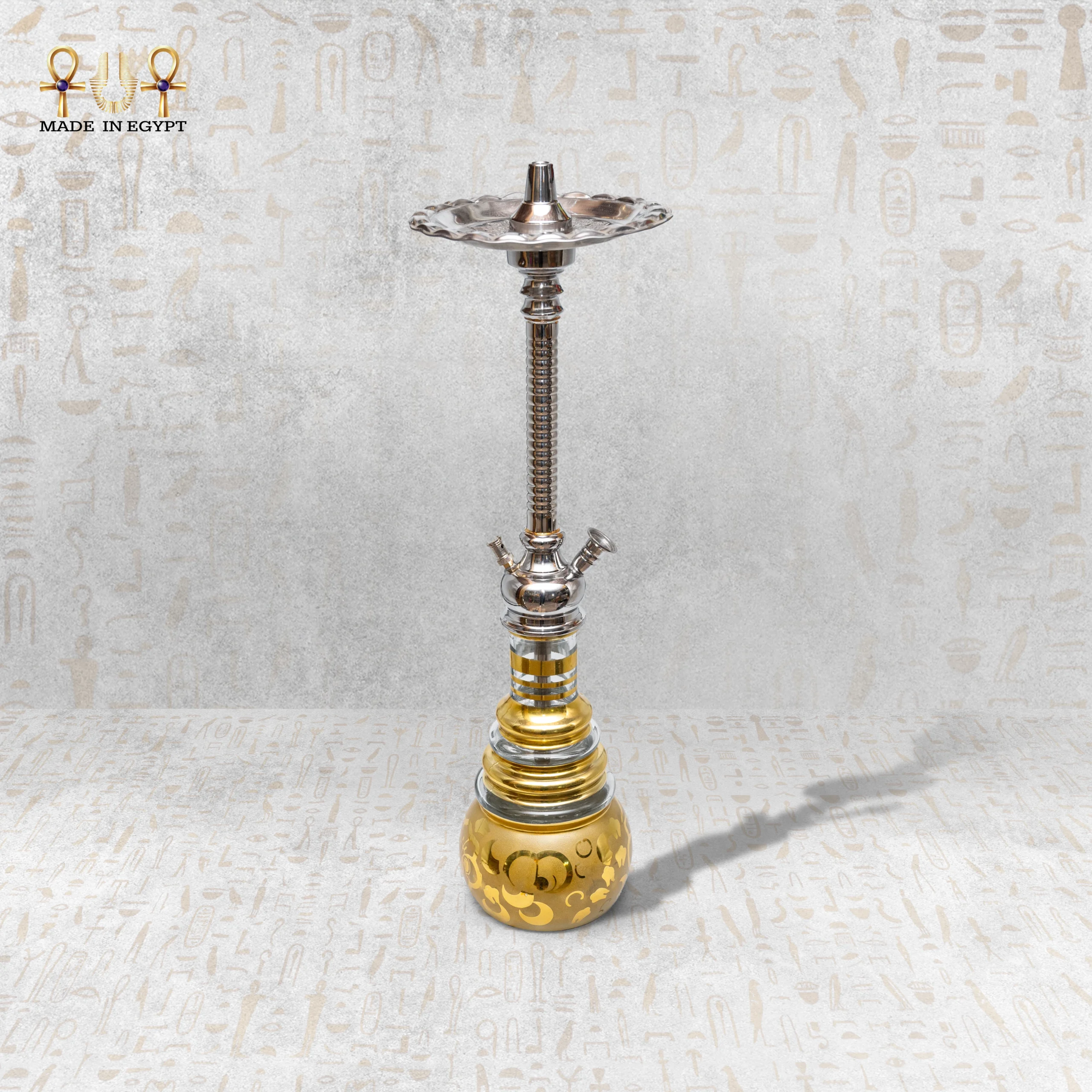كل تفصيلة من تفاصيل هذه الشيشة، من الزخارف الدقيقة إلى جودة التصنيع، تعكس إبداع الحرفيين المصريين وخبرتهم العريقة. تم اختيار المواد بعناية لتضمن المتانة وطول العمر دون التأثير على المظهر الجمالي، مما يجعلها قطعة فنية تدوم لسنوات.