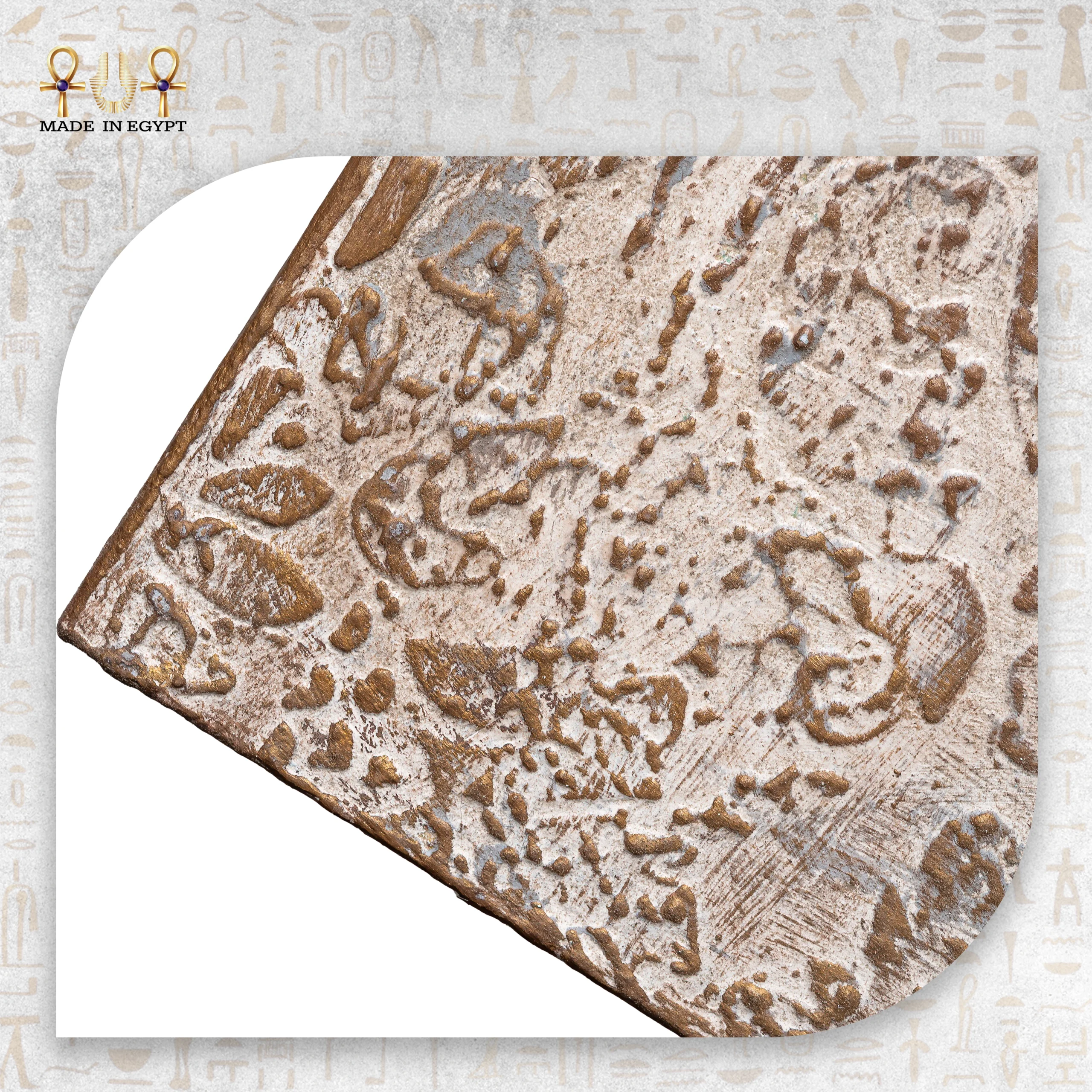 طاولة حكاية الخشب مصنوعة من خشب طبيعي بتشطيب يدوي ونقوش زخرفية بسيطة تعكس روح الحِرفة التقليدية. تصميمها المتين يجعلها مناسبة للاستخدام اليومي، سواء كطاولة جانبية أو لعرض قطع الديكور. لونها الهادئ وملمسها الدافئ يضيفان لمسة طبيعية وأنيقة لأي مساحة.