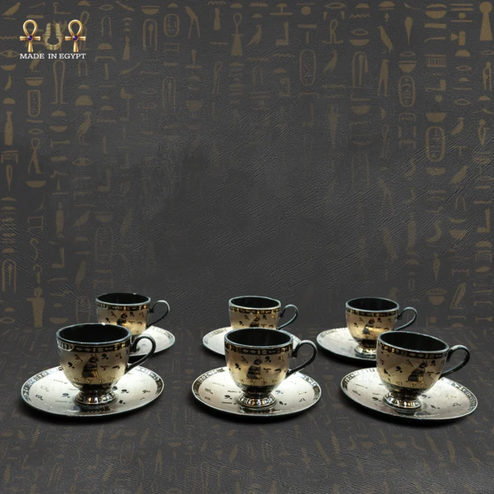 علاوة على ذلك، يُعد طقم الفرعون رمزًا للثقافة المصرية القديمة. يمكن استخدامه كهدية مميزة لعشاق التراث والفن العربي. يمكن عرضه أيضًا في المنازل والمكاتب لإضافة لمسة فخامة وثراء ثقافي. كل فنجان وصحن يحمل رسالة عن براعة الصياغة اليدوية وفن التصميم الذي امتد عبر العصور.
